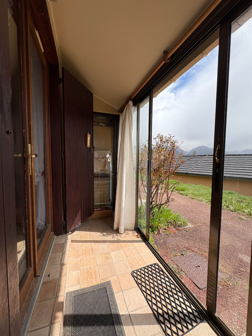 Ce bien vous offre en plus de sa vue dégagée sur les montagnes, un garage fermé.