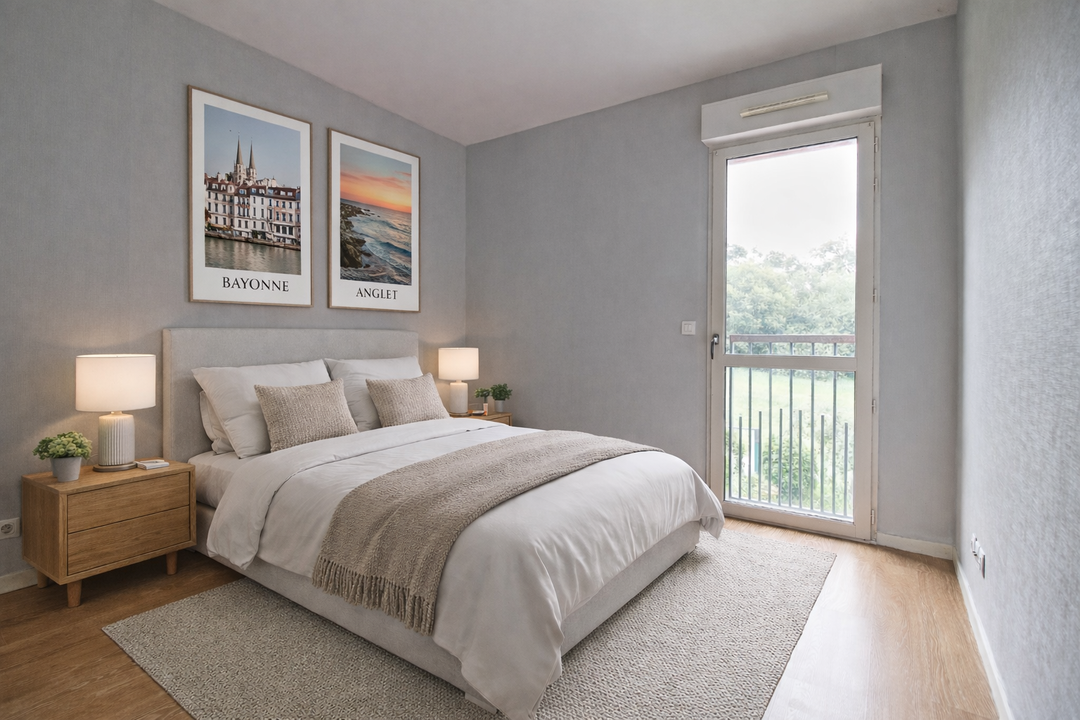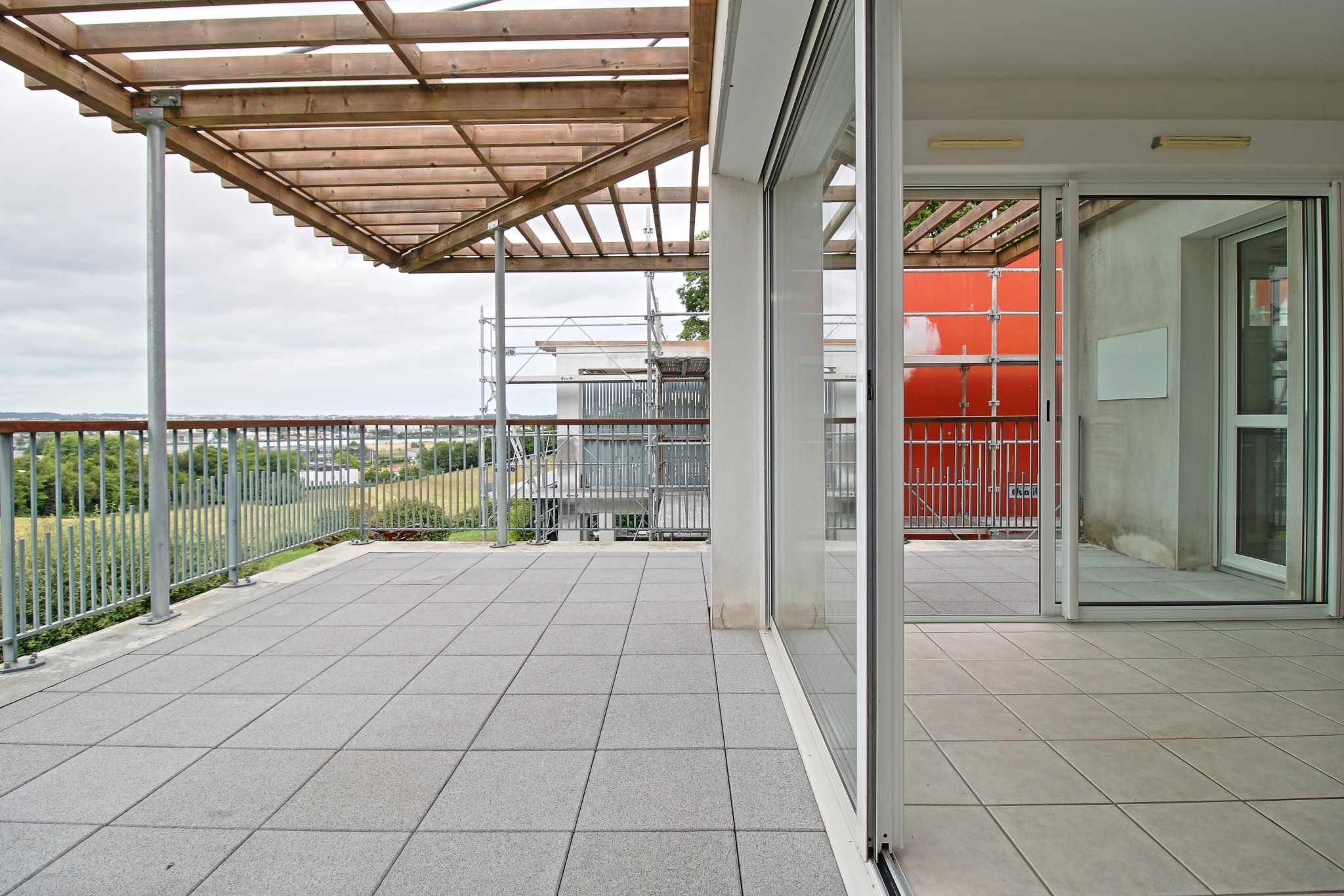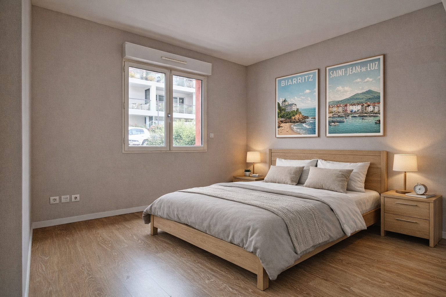 Composé d'une entrée avec placards, d'une pièce de vie avec cuisine aménagée ouverte le tout donnant sur une terrasse de 24m2 exposé sud offrant une superbe vue dégagée de Bayonne.