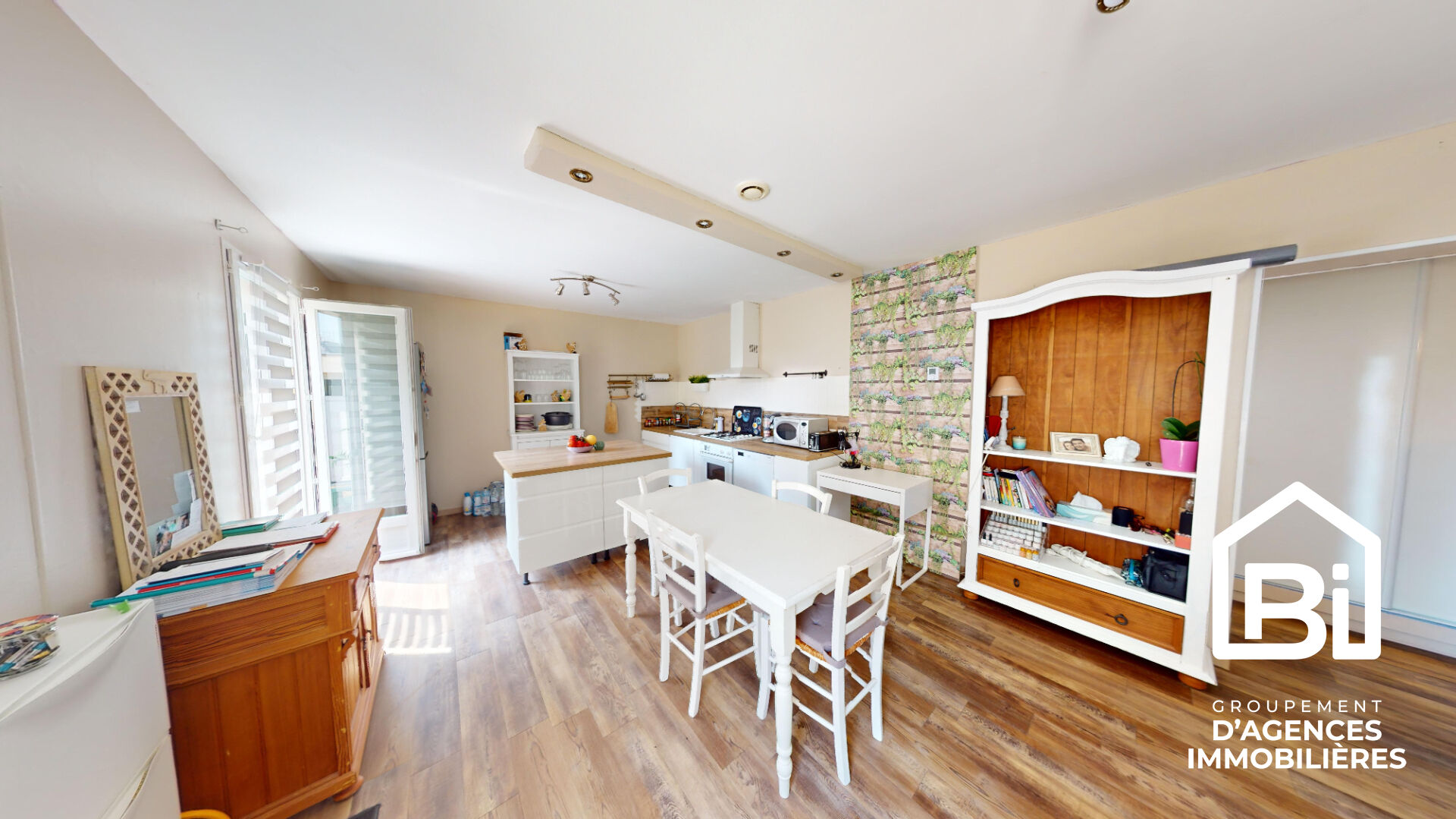 Une pièce de vie lumineuse d'environ 38m2 comprenant le salon, séjour et une cuisine aménagée et équipée avec ilôt central.