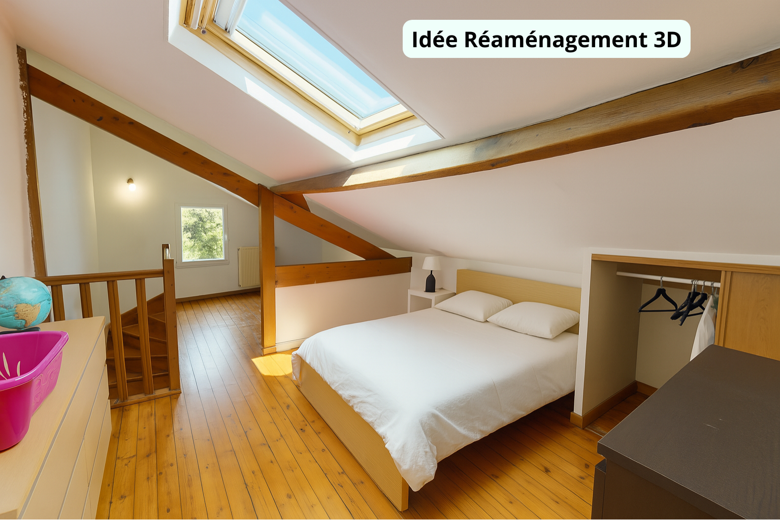Grande pièce sous-combles divisé en 3 espaces nuit (pouvant être aménagé en 2 chambres + palier)
