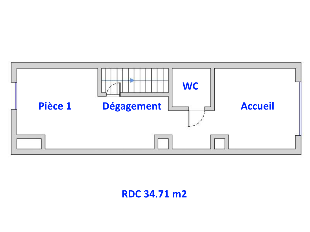 La surface de plain-pied d'environ 34 m² comprend un espace d'accueil d'environ 15 m² ainsi qu'un WC.