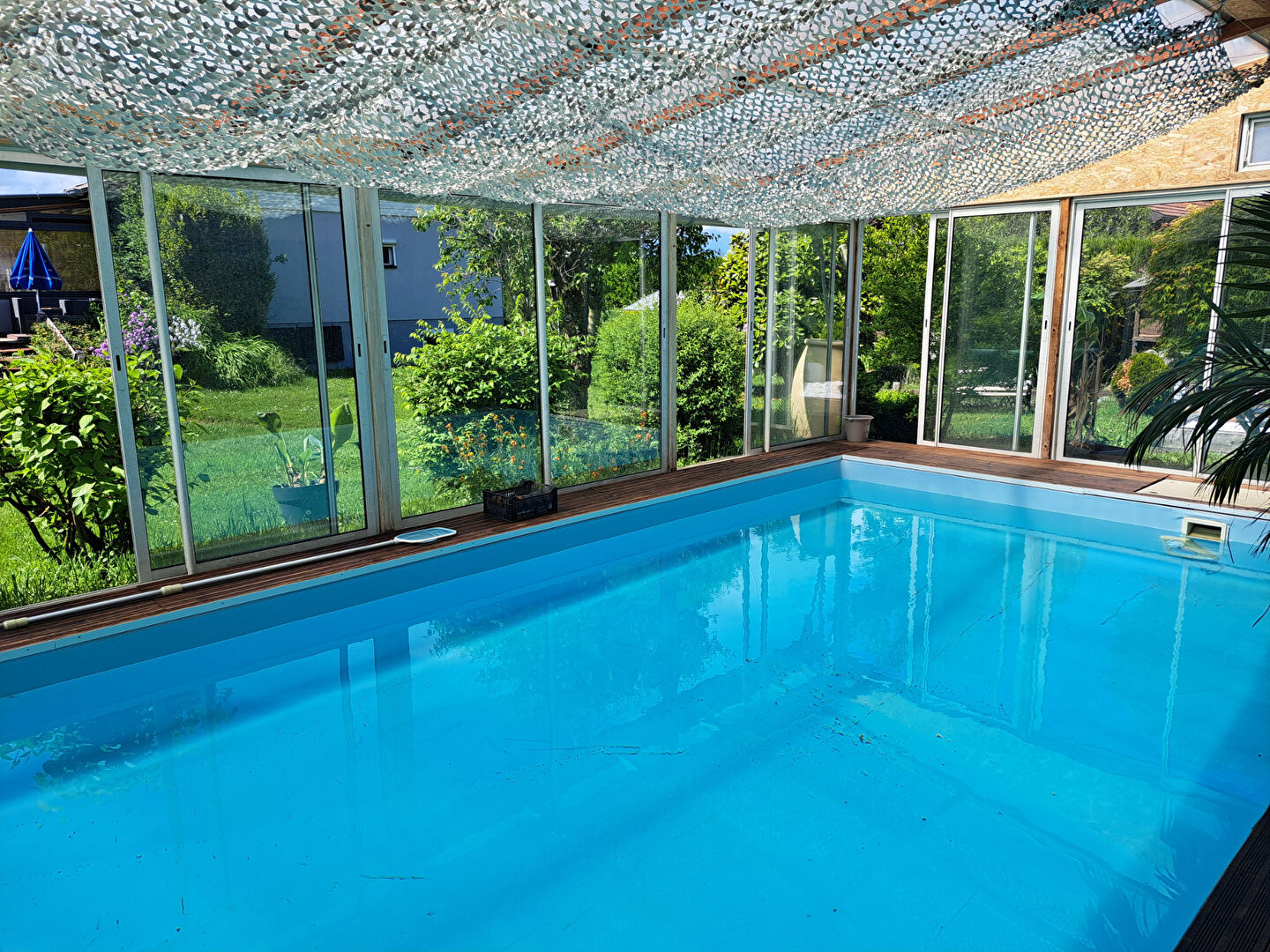 À l'extérieur, le jardin soigneusement entretenu est un véritable écrin de verdure. Vous y découvrirez une belle piscine couverte accompagnée de son pool house, idéale pour profiter des beaux jours. Un lieu parfait pour recevoir ou simplement savourer des instants de calme.