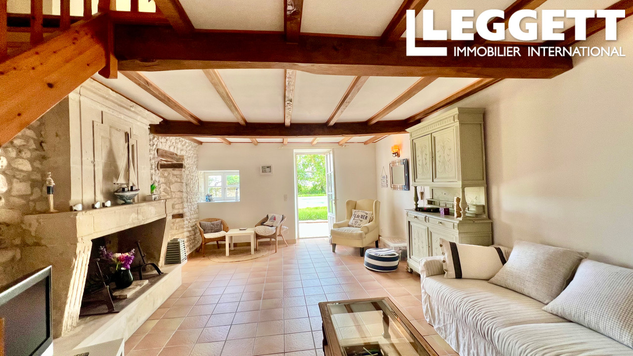 A37451LOP17 - Cette ferme Charentaise en pierre, rénovée, bien présentée, dans un joli village. Elle offre un cadre de vie agréable et de grandes possibilités d'activité, à proximité de l'estuaire de la Gironde, très prisé et pittoresque, en Charente Maritime.