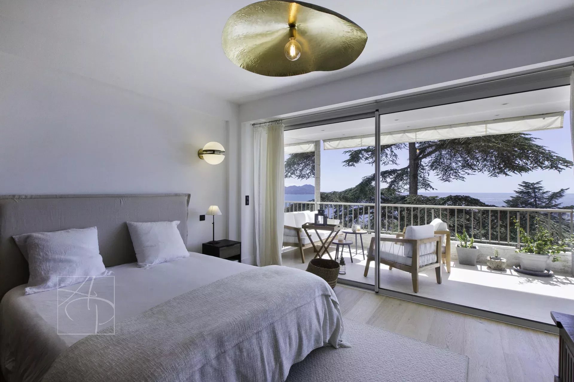 Situé en plein coeur du quartier ultra résidentiel et recherché de la Californie , au sein d'une prestigieuse résidence avec service conciergerie 24-24h et navette privée desservant le centre ville de Cannes. Appartement d'exception en étage élevé de 104.83 m2 loi carrez (habitable 113.63m2+ une loggia buanderie de 3.66m2) ouvrant sur une large et belle terrasse exposée sud sud-ouest d'environ 22.36m2, vue mer panoramique des iles de Lérins jusqu'à l'Estérel. Il se compose d'un spacieux séjour/ salle à manger , une cuisine américaine équipée haut de gamme ouverte, 3 belles chambres en suite avec chacune sa salle de douche bain. La Master ouverte sur la terrasse vous offre une vue à 180° sur la mer et les collines de l'Esterel au calme absolu. Nombreux rangements. Ce bien rare aux prestations raffinées est idéal pour y vivre confortablement à l'année ou en résidence secondaire. Il est vendu avec un garage et une cave.