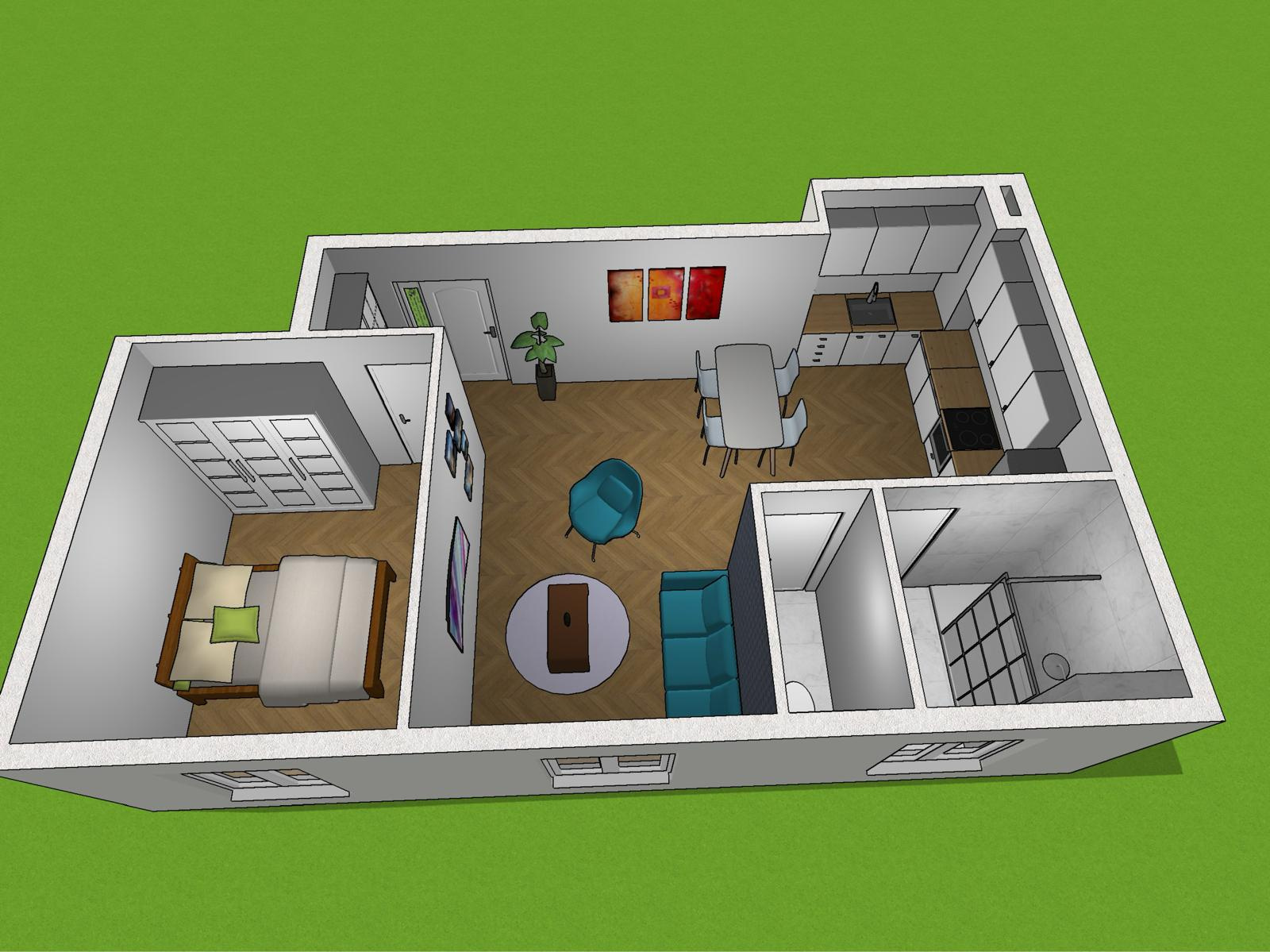 Une grande pièce de vie lumineuse avec cuisine ouverte (voir projet 3D)