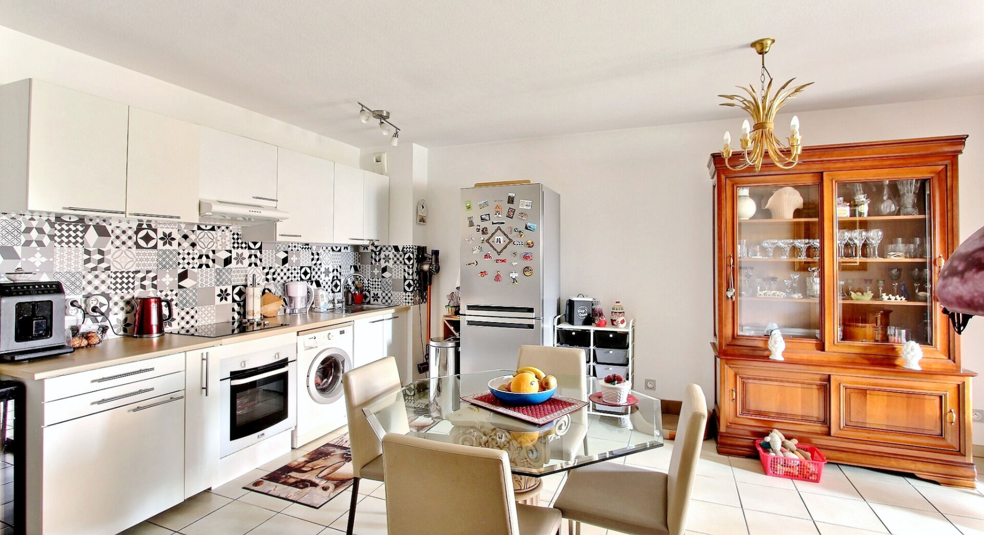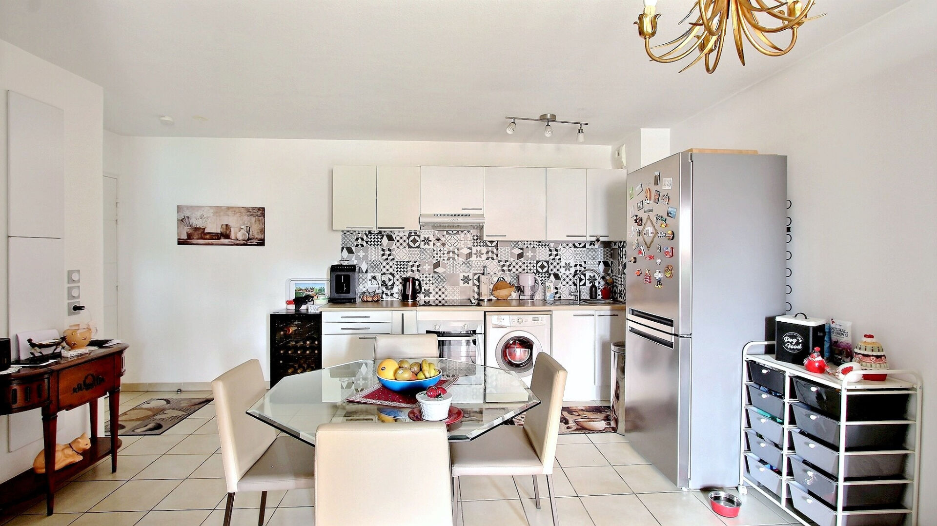 Cet appartement lumineux, à l'état irréprochable, se compose notamment d'un séjour ouvert sur une cuisine équipée, et dispose de deux belles chambres. De conception récente, il offre de belles prestations : normes BBC, cuisine équipée, terrasse, fibre optique internet, stationnement couvert.