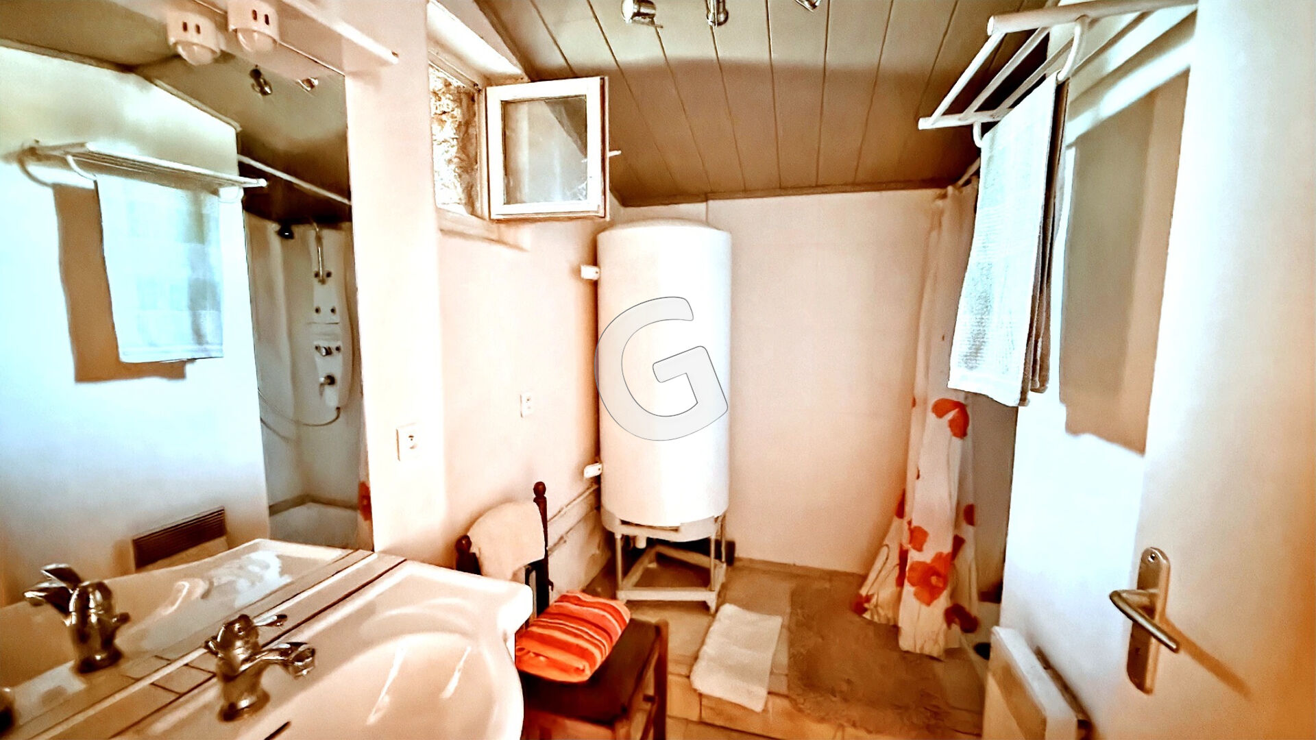 Beau potentiel pour cet ensemble immobilier situé à quelques kilomètres du bourg sur un terrain de plus de 1100 m² composé d'une maison d'habitation habitable de 52 m² comprenant une pièce de vie avec sa cuisine ouverte et une mezzanine, une chambre, une salle d'eau et un WC et un bâtiment en cours de rénovation (toiture et huisseries) à réhabiliter de 93 m² comprenant 3 pièces et une salle d'eau.