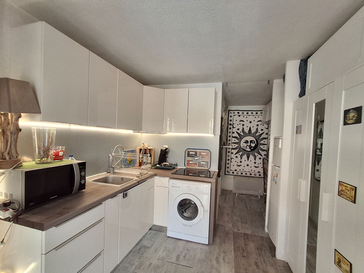 EXCLUSIVITE. La Franqui, Studio entièrement rénové composé d'une cuisine toute équipée ouverte sur séjour, d'un coin cabine, et d'une salle d'eau avec wc.. Le logement se situe en rdc avec charmante terrasse dont une partie est couverte. Copropriété avec piscine.