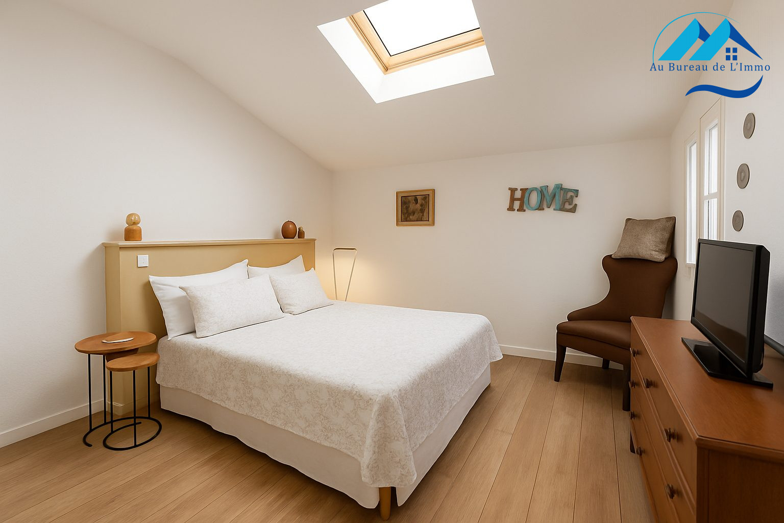 A l'étage 3 chambres, 2 salles d'eau, 1 wc séparé forment l'espace nuit.