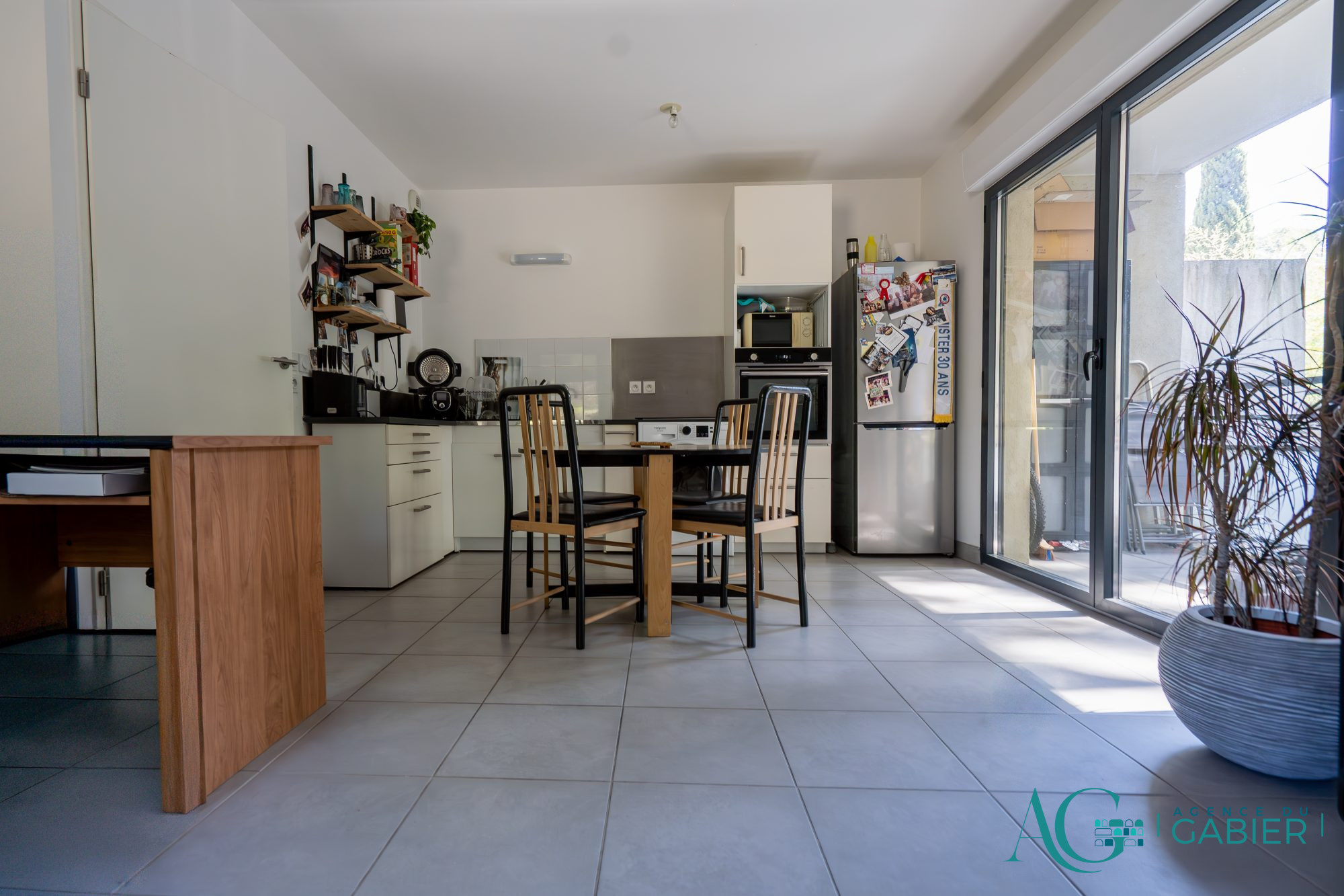 . La cuisine, aménagée et fonctionnelle, est intégrée dans le séjour, créant un espace de vie ouvert et convivial.