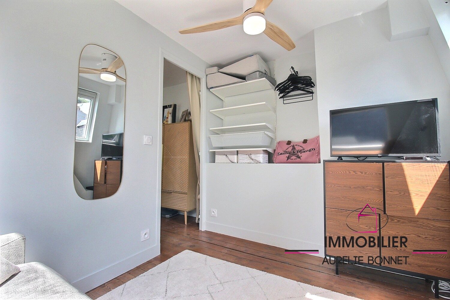 TROUVILLE CENTRE - Au coeur du quartier historique de Bonsecours, au 3eme et dernier étage d'une petite copropriété avec faibles charges, charmant 2 pièces parfaitement agencé. Il dispose d'un séjour avec espace cuisine et repas, une petite chambre, une salle d'eau, un wc séparé. Les mansardes, poutres et grandes ouvertures lui donnent beaucoup de charme. La location saisonnière est interdite dans cette résidence. Une cave.