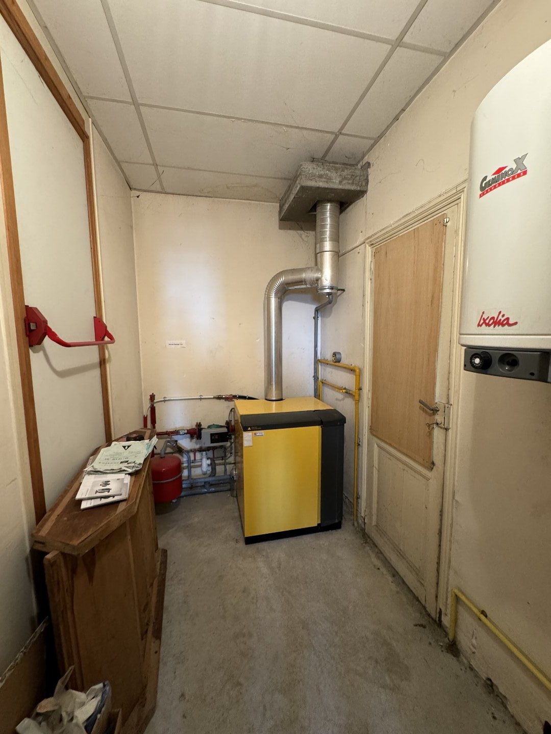 Ensemble immobilier à renover situé à deux pas des commerces, comprenant : entrée, une grande pièce d'environ 87m² avec une scene, une cuisine, une pièce bureau d'environ .50m², local chaufferie, wc. Petite cour. TAE.
