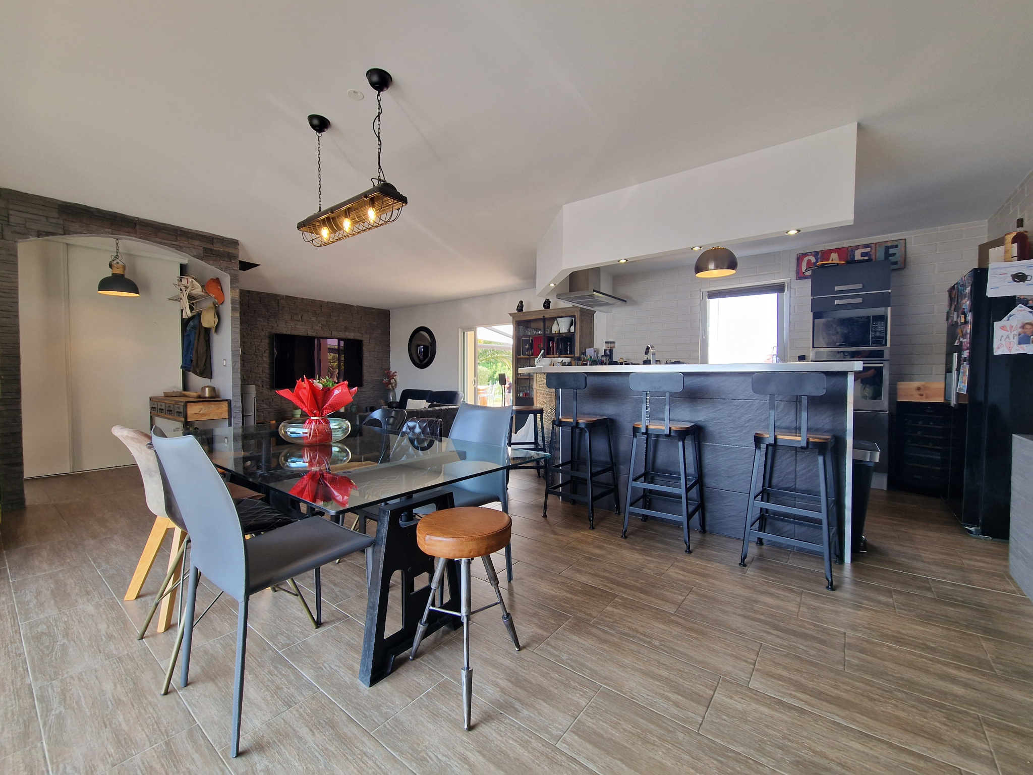 Châteauneuf-sur-Charente (16) - Située au calme, cette belle maison de plain-pied vous séduira par ses prestations et son jardin à l'arrière sans vis à vis. Le cadre verdoyant autour de la piscine est très agréable. Séjour climatisé, lumineux grâce à une baie qui s'ouvre sur la terrasse avec pergola.. Cuisine équipée ouverte avec comptoir. La partie nuit dispose de trois chambres confortables et d'une salle de bains avec douche à l'italienne. Ancien garage facile à exploiter en chambre ou bureau. Garage attenant de 30 m2. Terrain clos de 1951 m2 avec allée goudronnée, portail motorisé et visiophone. C'est parfaitement entretenu. Emplacement idéal, à proximité des commerces, écoles et services. Exclusivité !