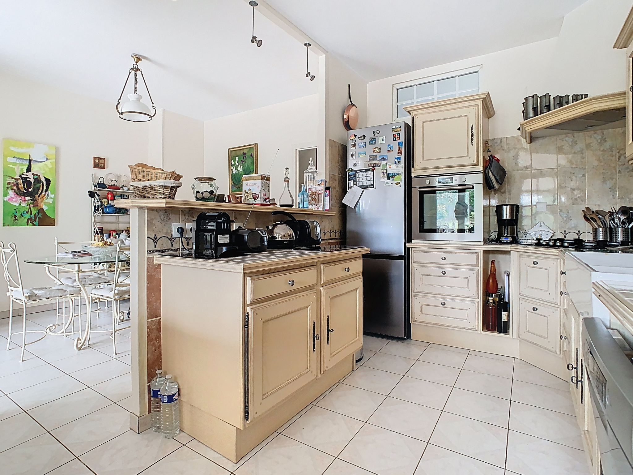 Le bien dispose au rez de chaussée d'une entrée sur salon avec cheminée, salle d'eau avec wc, cuisine aménagée et équipée s'ouvrant sur une véranda baignée de lumière dotée d'un insert bois : un véritable cocon qui prolonge les moments de convivialité, été comme hiver, et qui s'ouvre sur une grande terrasse extérieure idéale pour les repas en plein air.