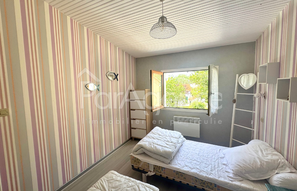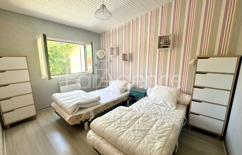 Chauffage électrique, abri de jardin, parking privatif avec possibilité de stationnement sur le terrain ainsi qu'un parking commun dans la copropriété. Cette maison combine confort, lumière et proximité immédiate de la plage.
