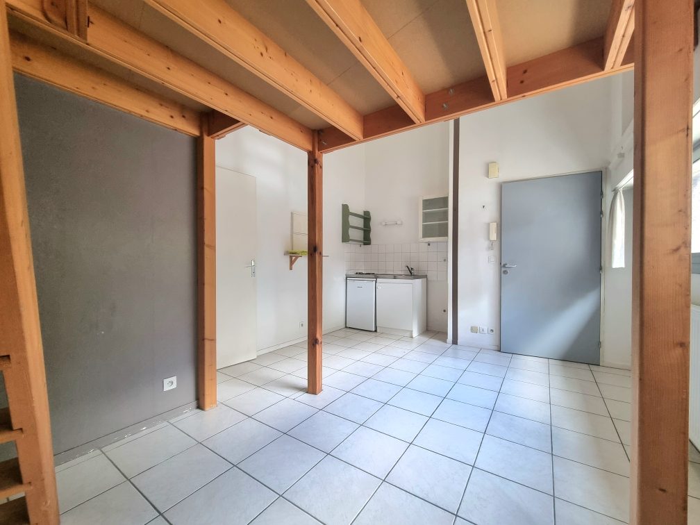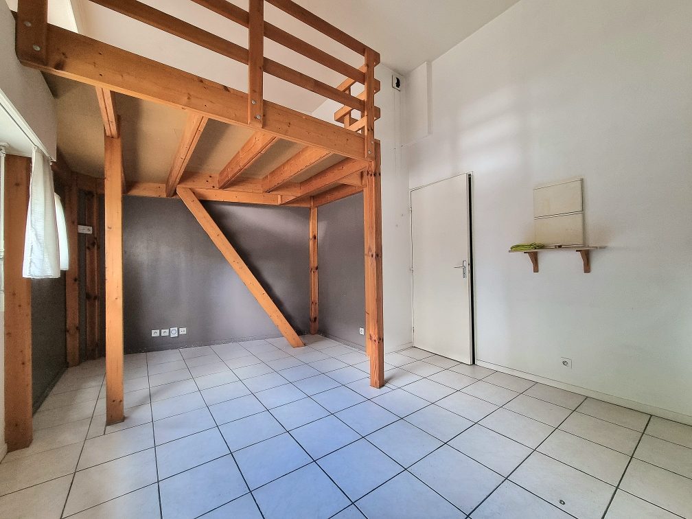 Une pièce principale avec un coin cuisine équipé, une salle d'eau, WC .