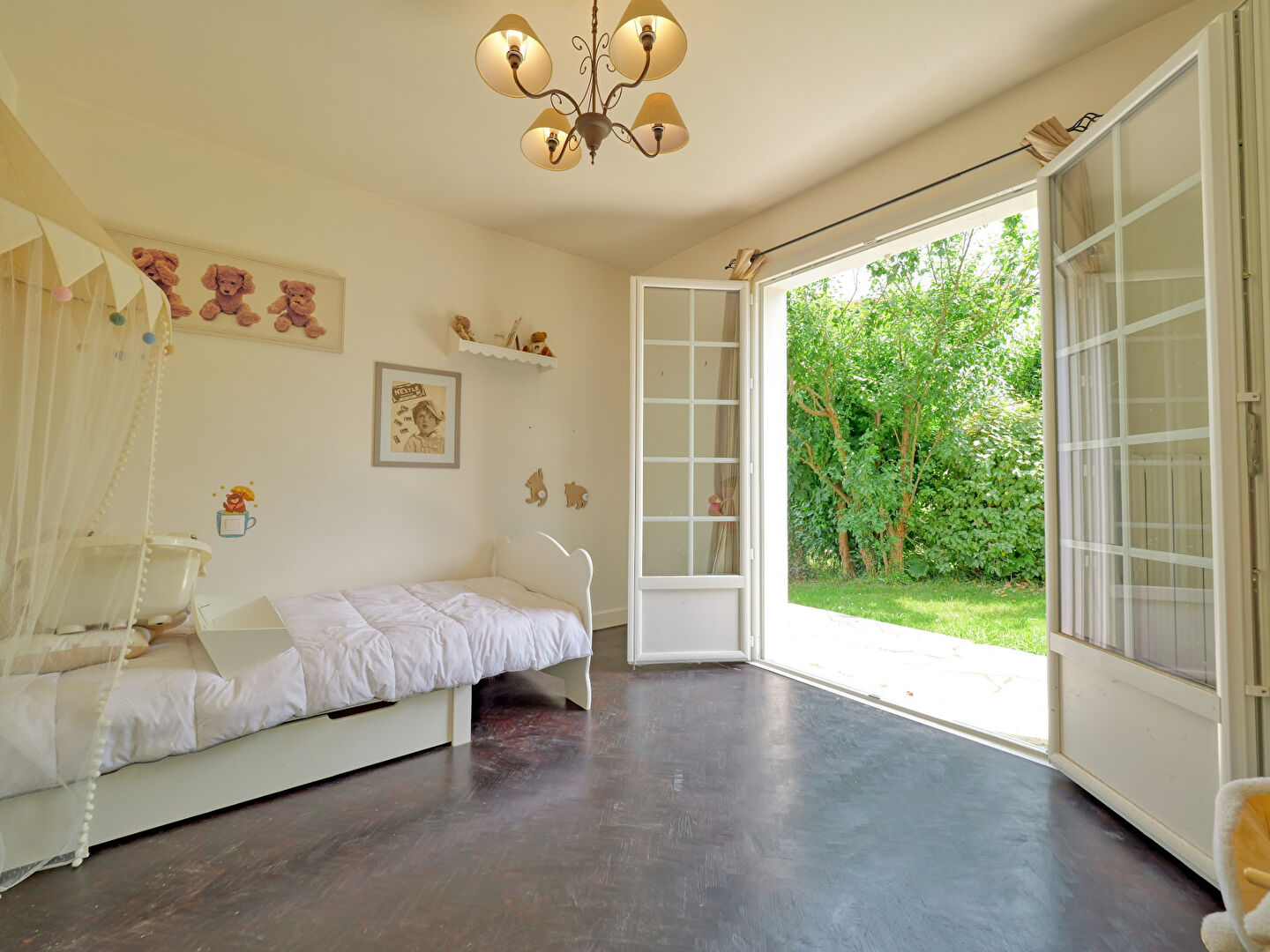 Elle se compose en rez de jardin, d'une grande pièce de vie donnant sur la terrasse, une cuisine individuelle, trois chambres, salle de bain et buanderie. A l'étage, salle de jeux, deux chambres, et une salle d'eau.