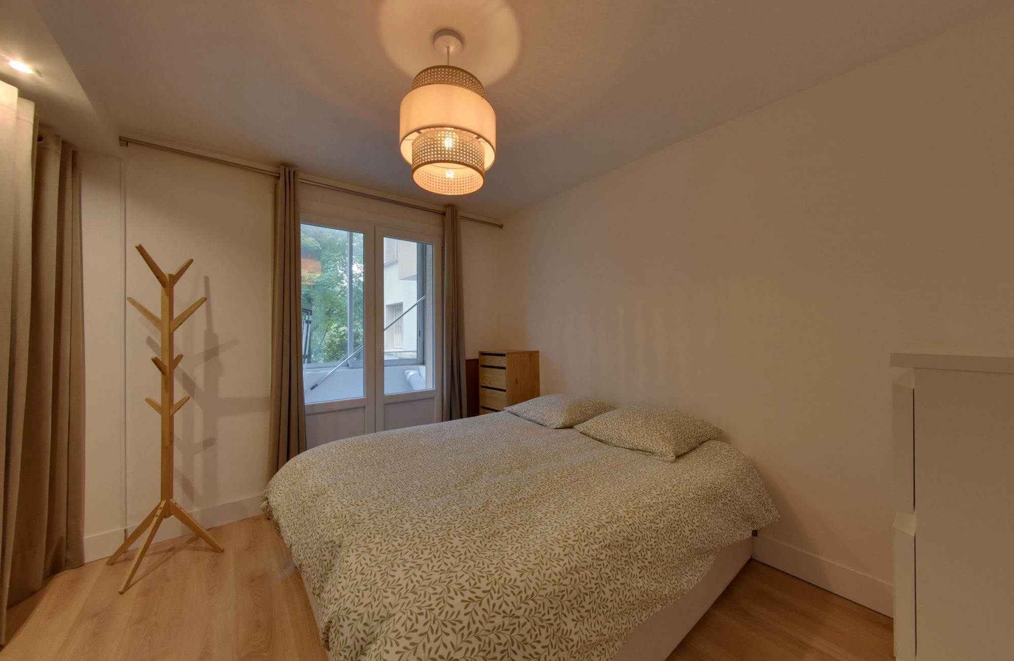 -Grenoble / Rue Ponsard -Idéalement situé au coeur des commodités, laissez vous charmer par cet appartement lumineux de type 5 de 113m² entièrement rénové avec goût.La configuration actuelle comprend un T2 de 37m² offrant un séjour avec cuisine équipée desservant un balcon, une chambre indépendante ainsi qu'une salle d'eau et un Wc séparés. Actuellement loué 690?/mois HC il offre une opportunité intéressante pour les investisseurs.Le T3 de 76m² est composé d'un vaste séjour exposé Sud et donnant accès à un balcon, une cuisine américaine ainsi que deux chambres spacieuses, une salle d'eau avec Wc et de nombreux rangements.Les deux appartements peuvent être facilement réunis et à moindre coût, en un seul grand appartement grâce à une simple ouverture entre les deux unités.Deux caves viennent compléter ce bien.