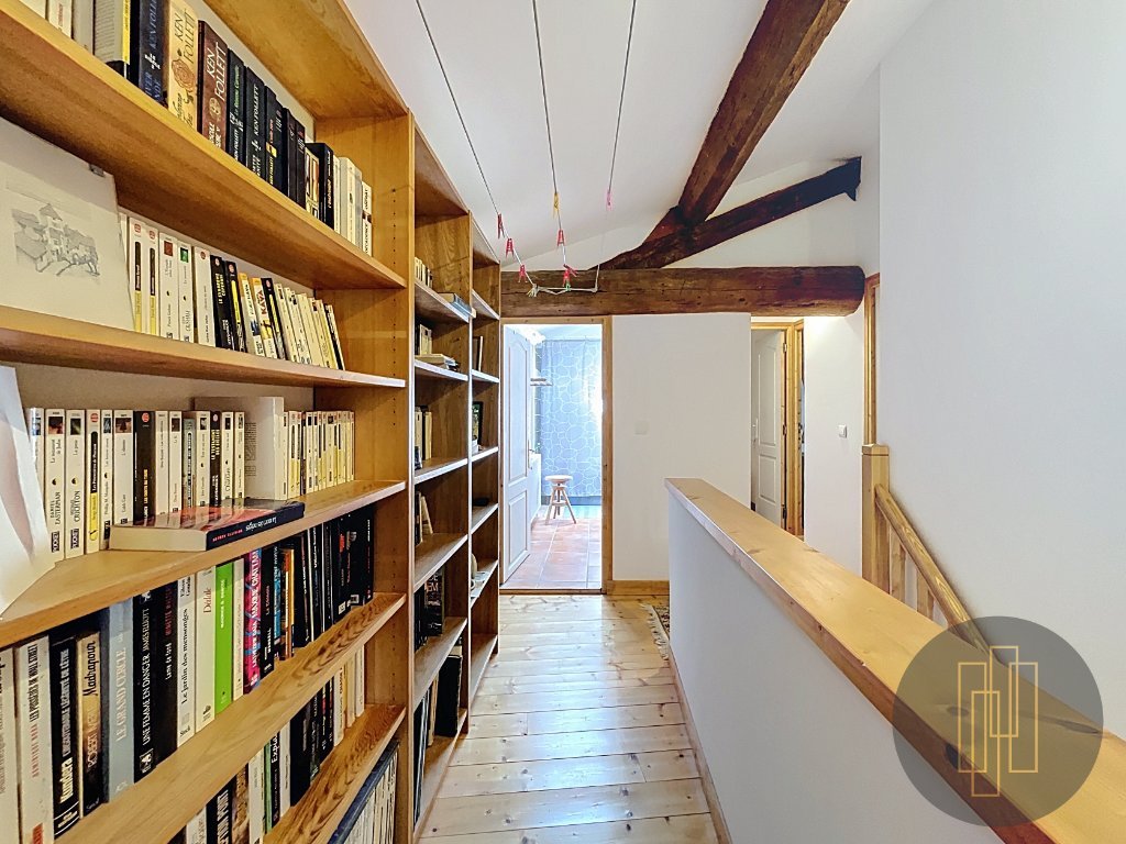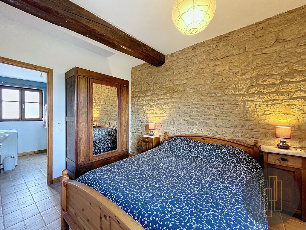 À l'étage, trois chambres spacieuses conservent le charme authentique des poutres et pierres apparentes, complétées par une salle de bains et un WC.