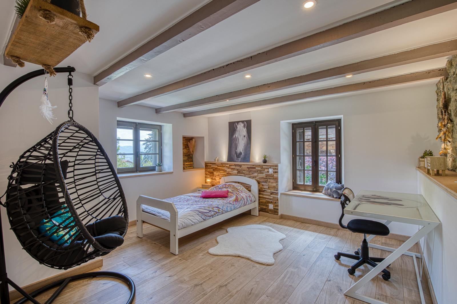 À seulement 5mn de La Roche-sur-Foron, dans un environnement champêtre où la nature dialogue avec le confort, se dévoile cette demeure de caractère de 245 m2 habitables. Une maison où le charme opère dès le seuil franchi, et où chaque espace a été pensé pour conjuguer authenticité, volume et sérénité.