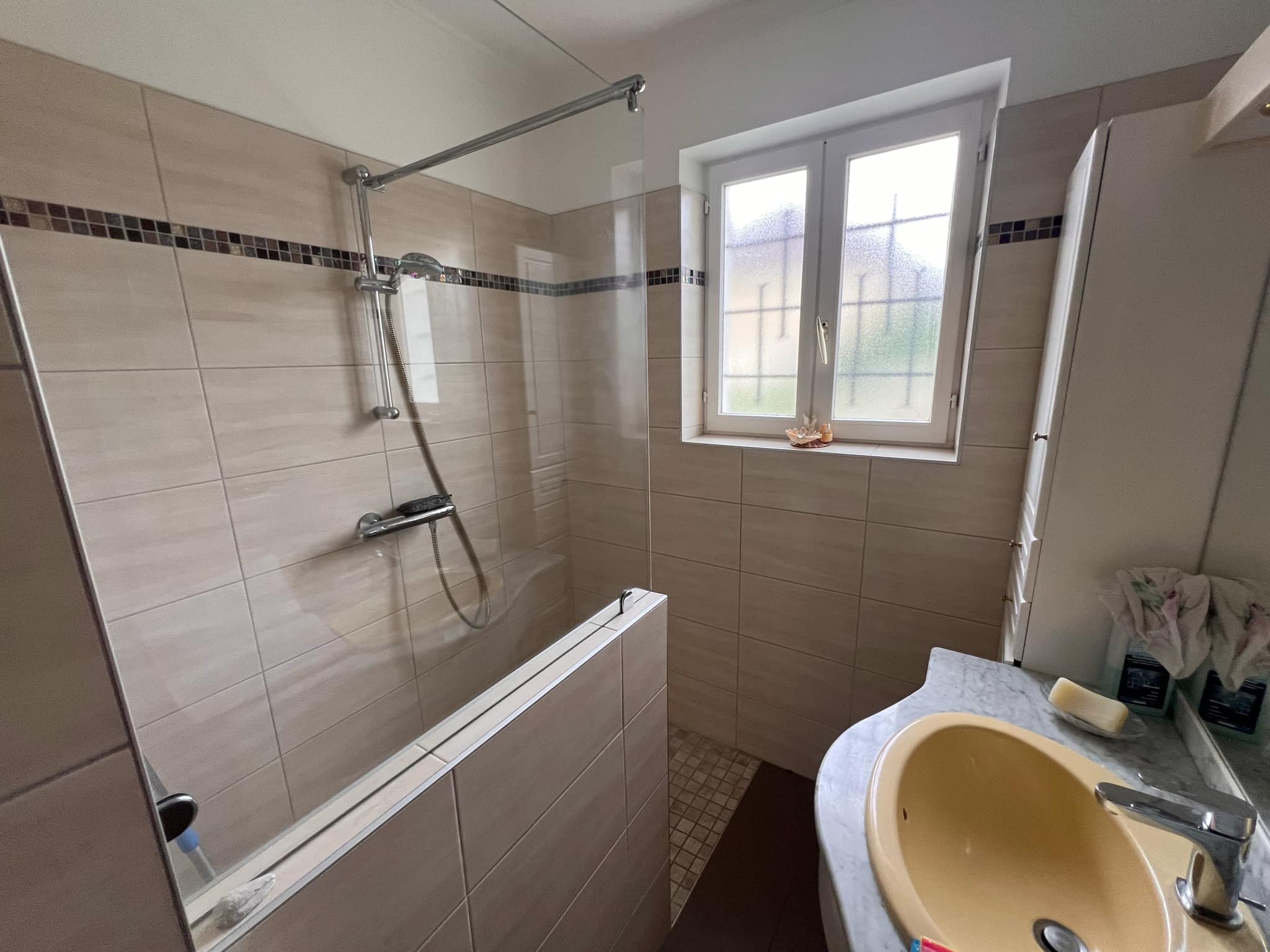 A l'étage un grand palier dessert un wc, une deuxième salle d'eau, un grenier aménageable et une grande chambre. Le sous sol offre divers espaces: une buanderie, une cuisine d'été, un atelier, un celier, un garage et même une cave, le tout édifié sur un terrain clos et arboré de 1619 m2.