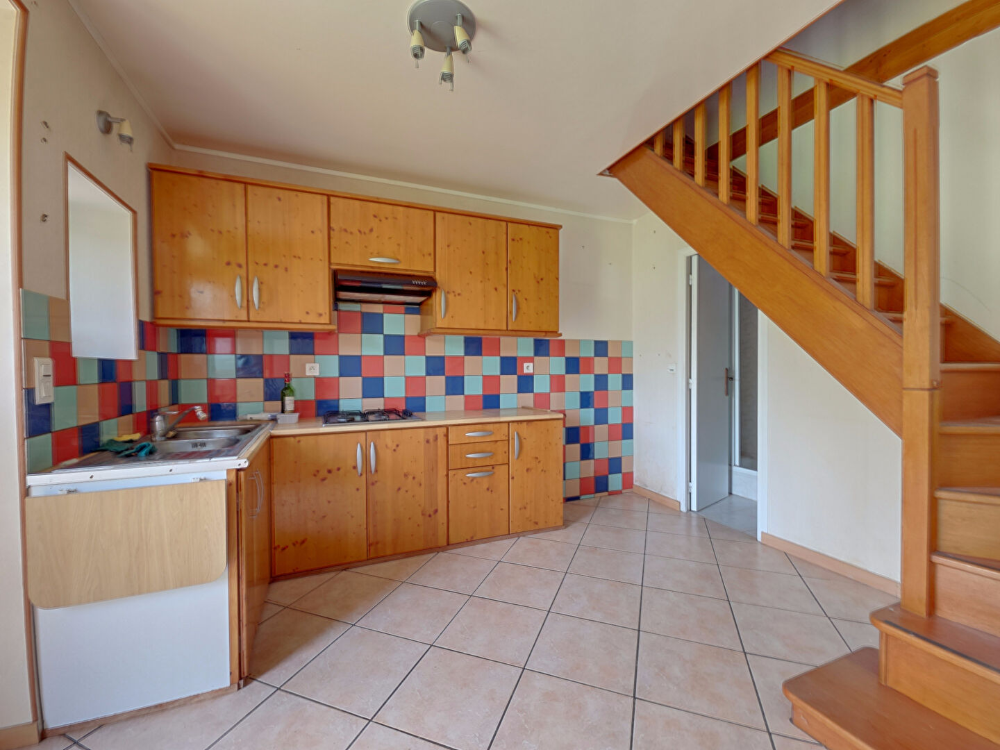 À l'étage : palier, chambre, grenier à aménager