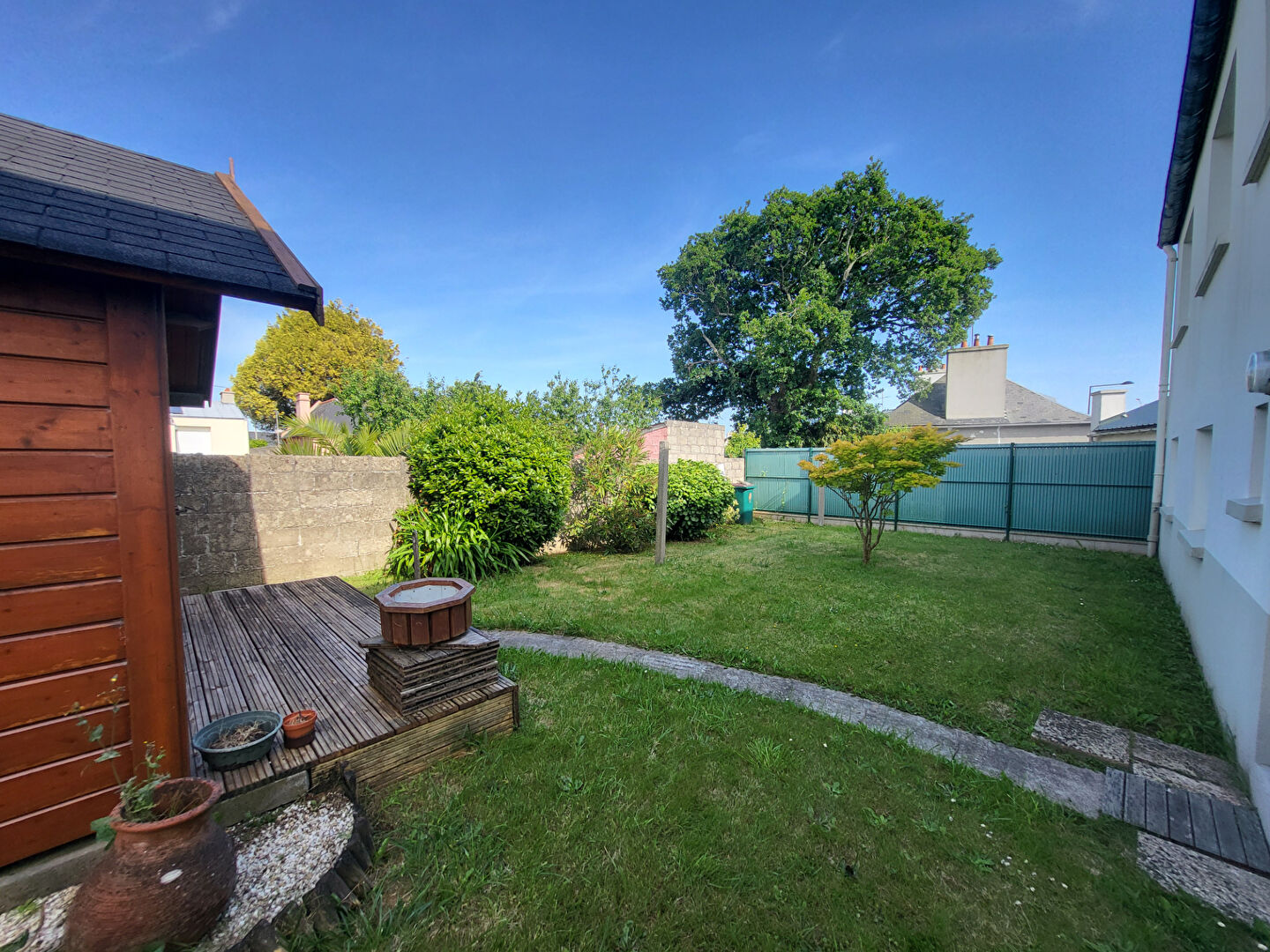 Non mitoyenne, cette maison dispose d'un terrain de 420m² , son jardin arboré est très bien entretenu, à l'abri des regards.