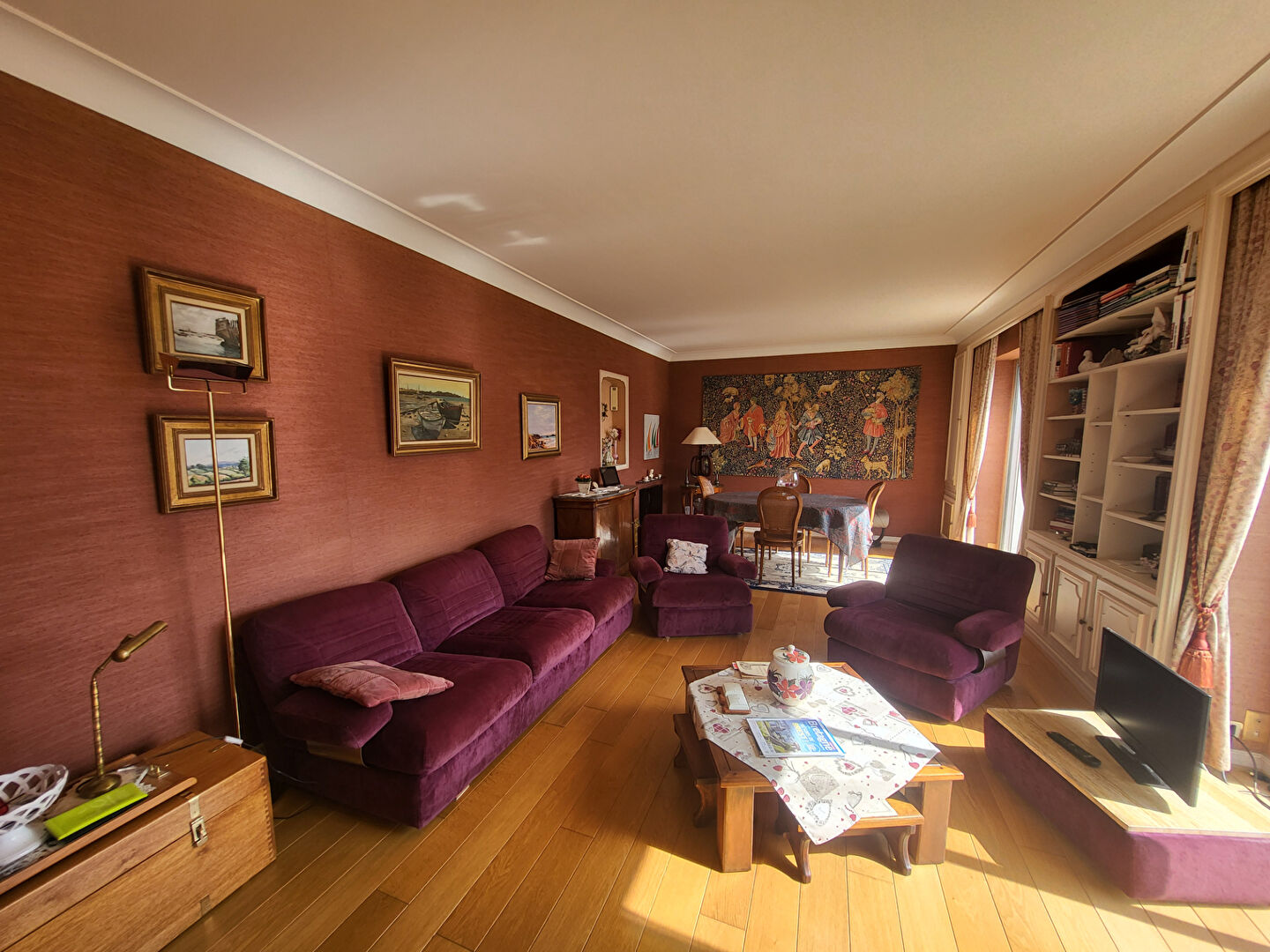 Elle se compose d'une belle entrée avec un salon séjour lumineux et orienté SUD, une grande cuisine pouvant accueillir une belle tablée.