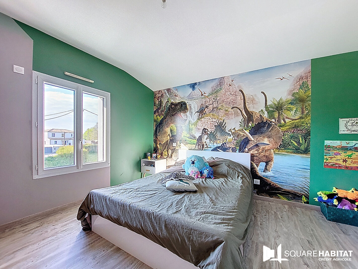 À l'étage, un palier dessert trois chambres, dont une avec dressing, un deuxième WC et une salle de bains.