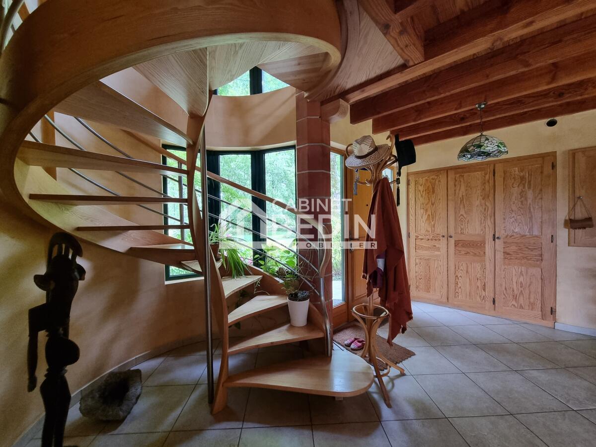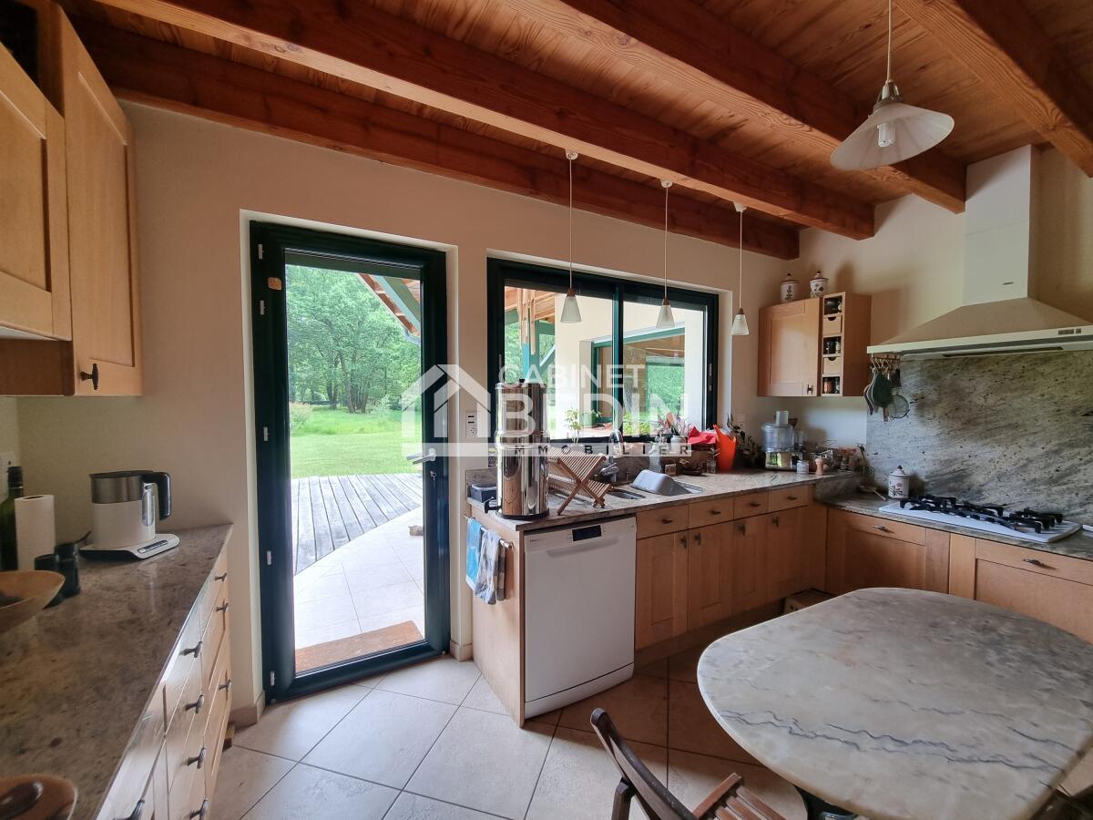 Propriété à 6 km de Saint Symphorien. À l?écart de l?agitation, laissez-vous séduire par cette maison d?architecte de 2003, pensée pour allier l?élégance, le confort moderne et l?harmonie avec la nature. Avec près de 240 m² sur deux niveaux, elle déploie une pièce de vie de plus de 50 m² baignée de lumière, agrémentée d?une cheminée double foyer et de baies vitrées tournées vers la marre et le parc, créant une ambiance chaleureuse et contemplative.