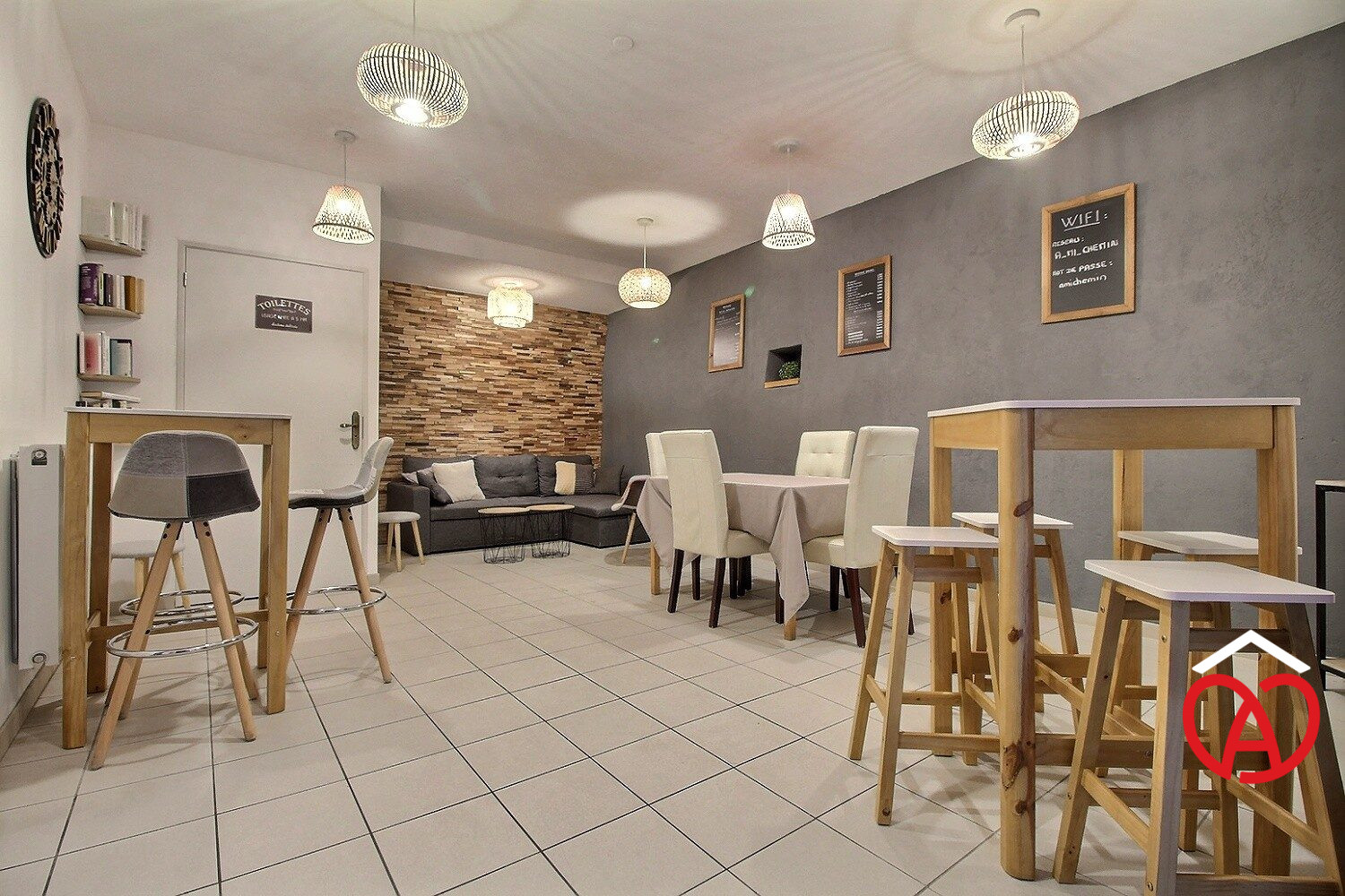 - 1 belle pièce de vie avec accès vers l'extérieur (possibilité de petite restauration)