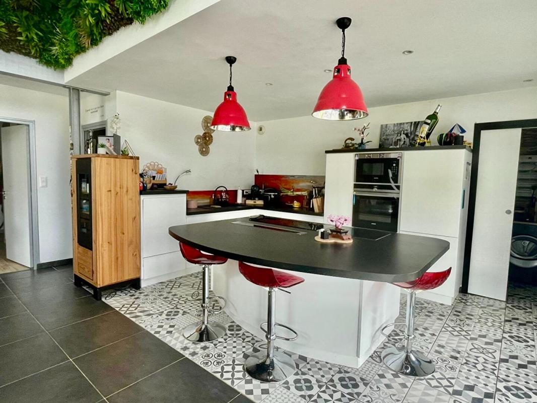 Cette pièce de vie se tourne sur une terrasse de 45 m² bénéficiant de la présence d' une pergola bio-climatique . De quoi passer de beaux moments !!