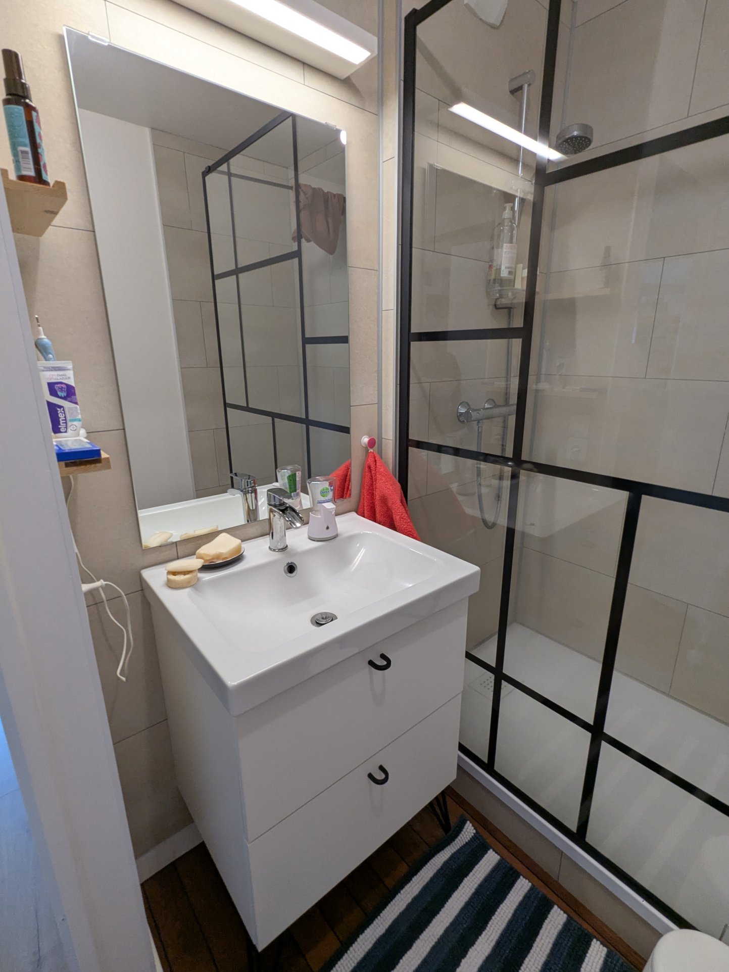 Il offre un hall d'entrée avec placard, salon/séjour ouvert sur cuisine aménagée et équipée, Cellier, 2 chambres, 1 bureau, salle d'eau, toilette. Balcon.