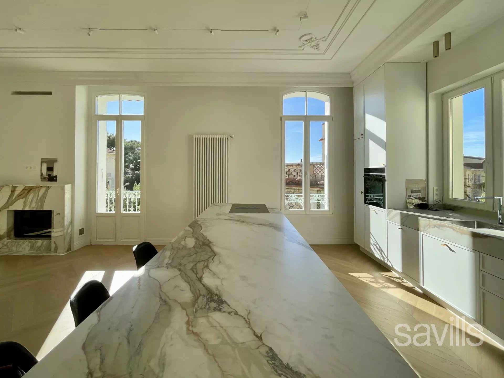A pied du centre ville et des plages, appartement belle époque luxueusement rénové avec son jardin privatif dans une petite copropriété. Vaste séjour de 50 m² avec cheminée et cuisine en plan ouvert s'ouvrant sur un balcon en façade avec vue mer. Il y a 3 belles chambres, chacune avec salle de bains attenante et placards aménagés.