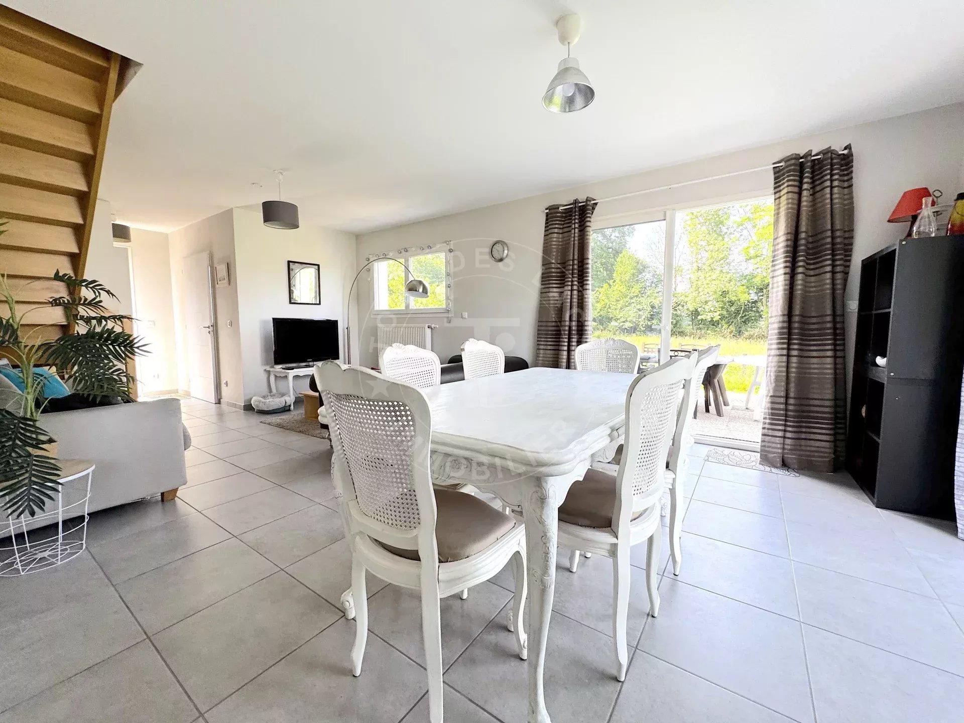 Située à proximité du village de Marcellaz-Albanais, à 5 minutes des commerces, écoles et commodités, cette jolie maison de 2019 bénéficie de calme et d'une vue dégagée sur la campagne environnante. Elle est implantée sur une parcelle de terrain d'environ 628 m² et se compose d'un rez-de-jardin avec un grand espace de vie (entrée-salon-salle à manger-cuisine) et un WC. L'étage dessert trois chambres confortables, une salle de bains avec baignoire et douche, et un WC indépendant. Un garage de 15 m², accessible depuis la maison, se trouve également en rez-de-jardin. Grâce à ses nombreuses ouvertures, la maison est très lumineuse. Sa configuration en fait une maison facile à vivre.