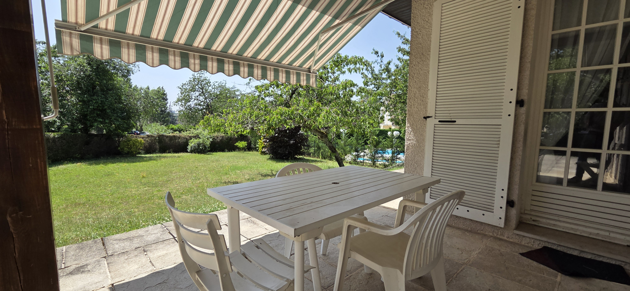Le parcelle de terrain bien exposée est piscinable et donne sur un espace vert du lotissement, ce qui apporte à l'oeil une perspective aérée et sans vis à vis direct.