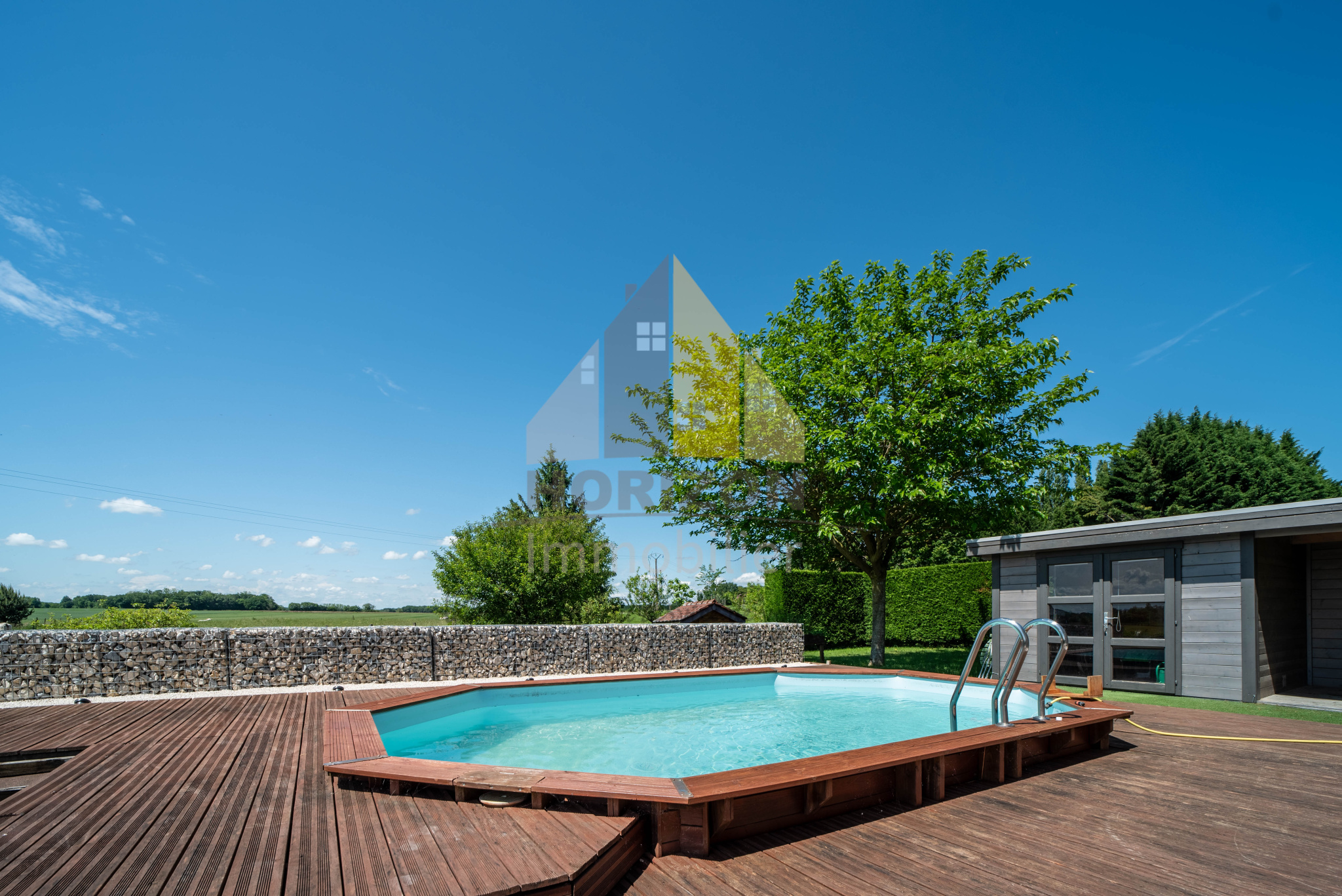 Vous serez séduits par la qualité des prestations : plancher chauffant au sol au rez-de-chaussée, baies vitrées et porte-fenêtre en PVC double vitrage, cuisine équipée récente, une piscine hors-sol, une terrasse carrelée, une cour goudronnée, un garage avec porte sectionnelle motorisée, un joli jardin.