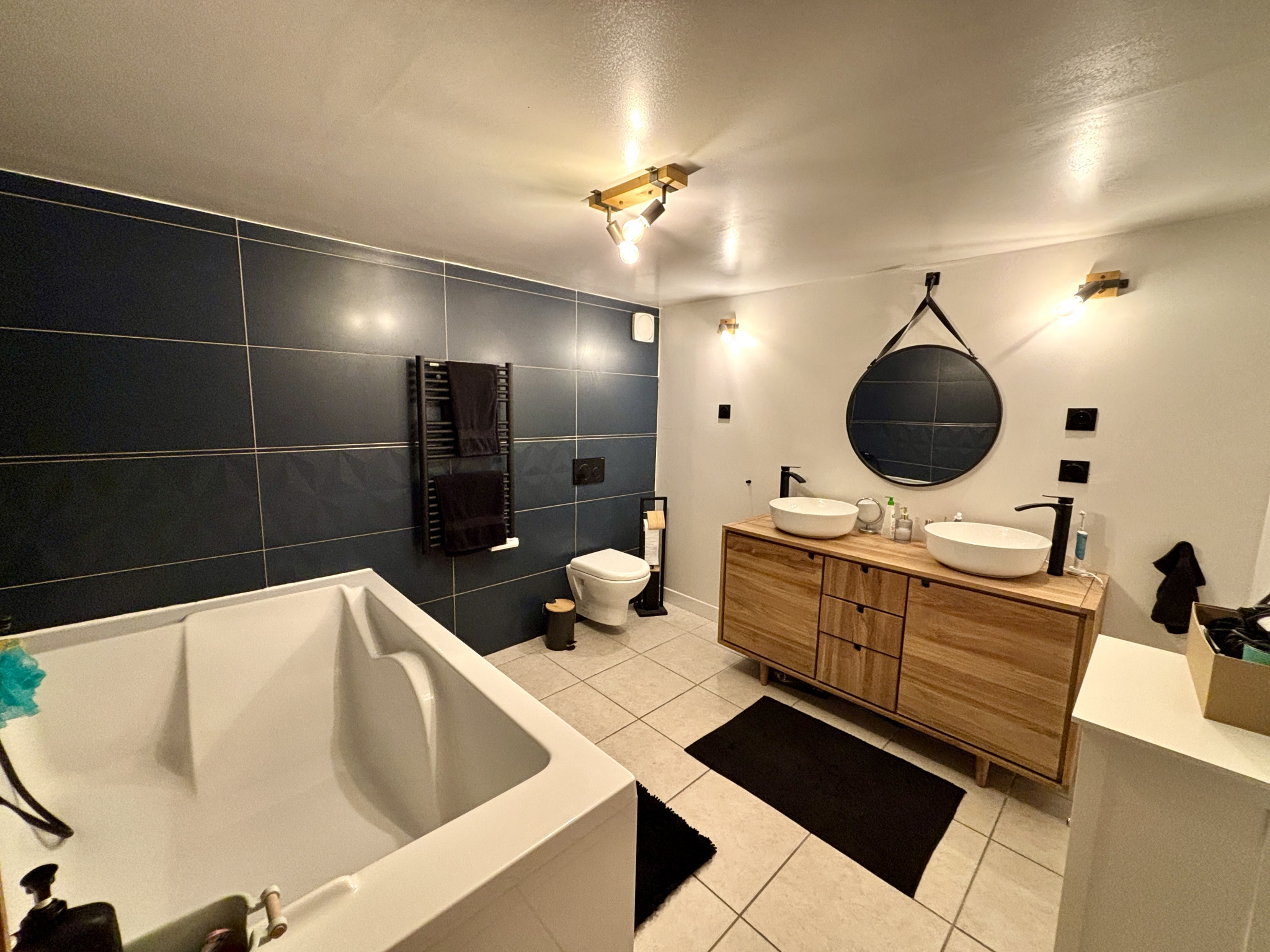 La maison dispose de quatre chambres, dont une suite parentale complète avec dressing et salle de bains privative avec WC, offrant un véritable cocon indépendant. Une seconde salle d'eau, ainsi que deux autres WC, renforcent la fonctionnalité du lieu.