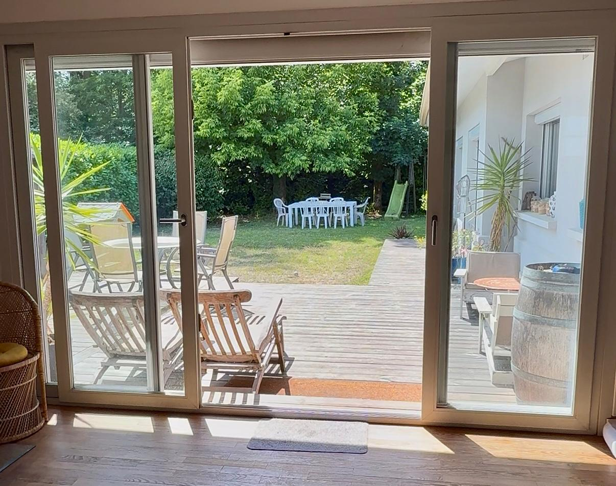 Climatisation réversible, production électrique par panneaux solaires, garage, 3 parkings bitumés, portail électrique, cave de 33m², jardin de 600m² piscinable, intime et sans vis à vis.