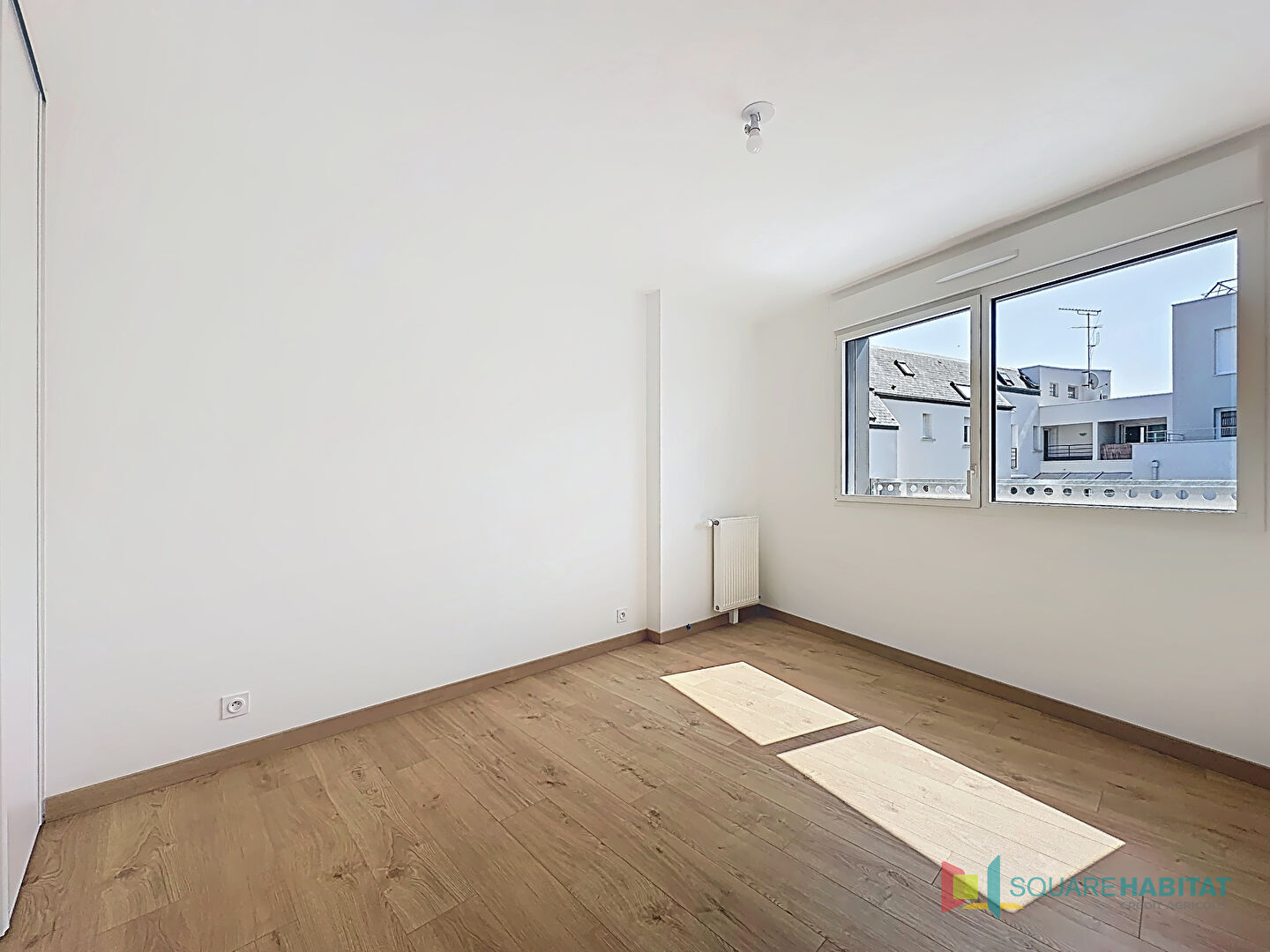 Deux grandes chambres dont une avec placards et une avec accès à la terrasse, salle de bains et couloir.