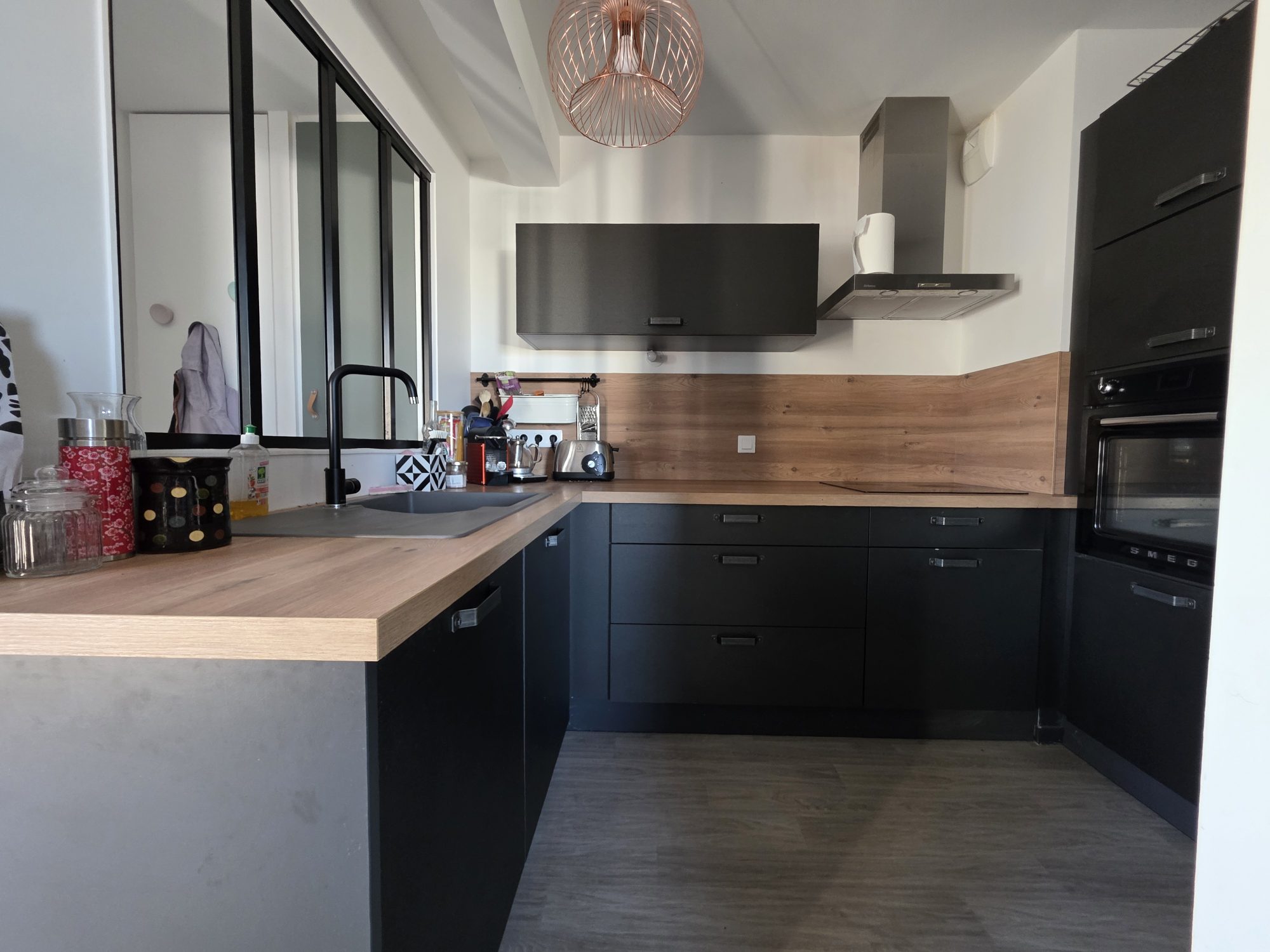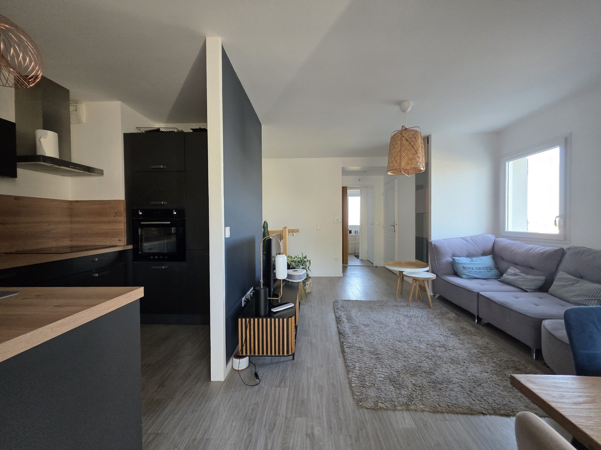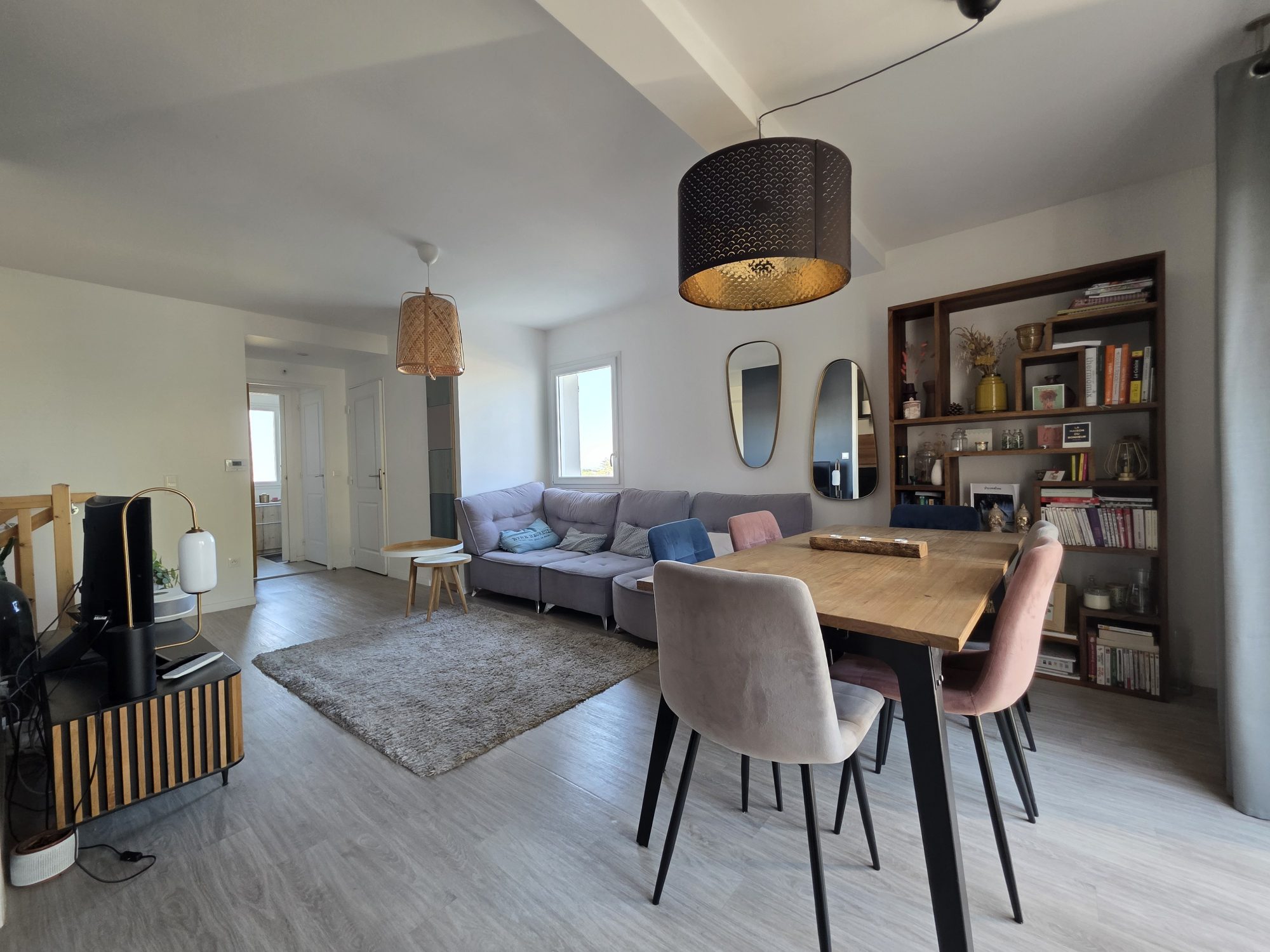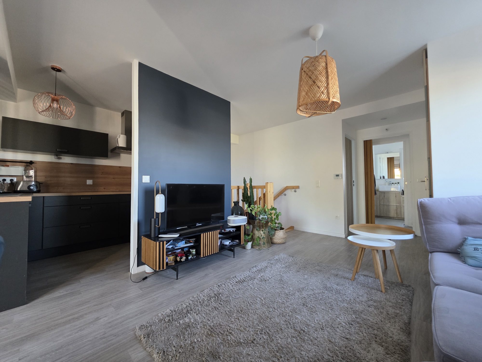 Au rez-de-chaussée, vous profiterez d'une pièce de vie lumineuse avec cuisine ouverte aménagée et équipée, idéale pour vos moments en famille ou entre amis.