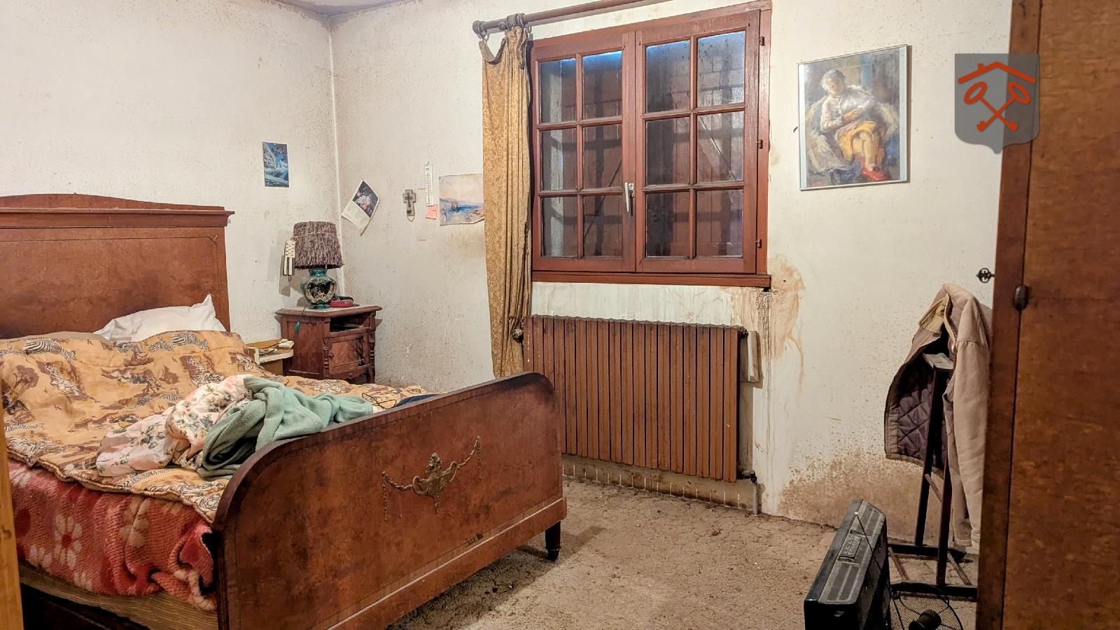 PAVILLON S/SOL à rénover : Entrée, séjour salon avec insert, cuisine aménagée, 2 chambres, salle de bain, wc.