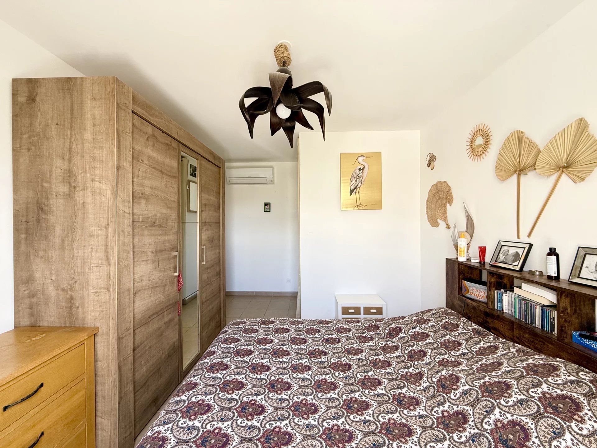 L'espace nuit est séparé de l'espace vie avec un dégagement desservant un WC séparé, une salle d'eau et deux chambres avec rangement.