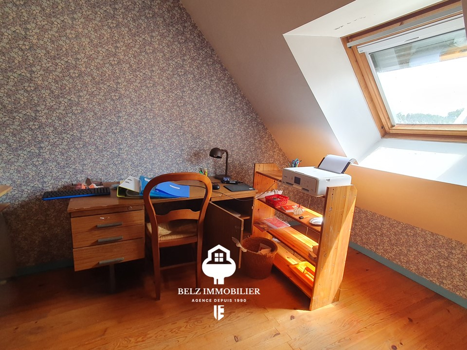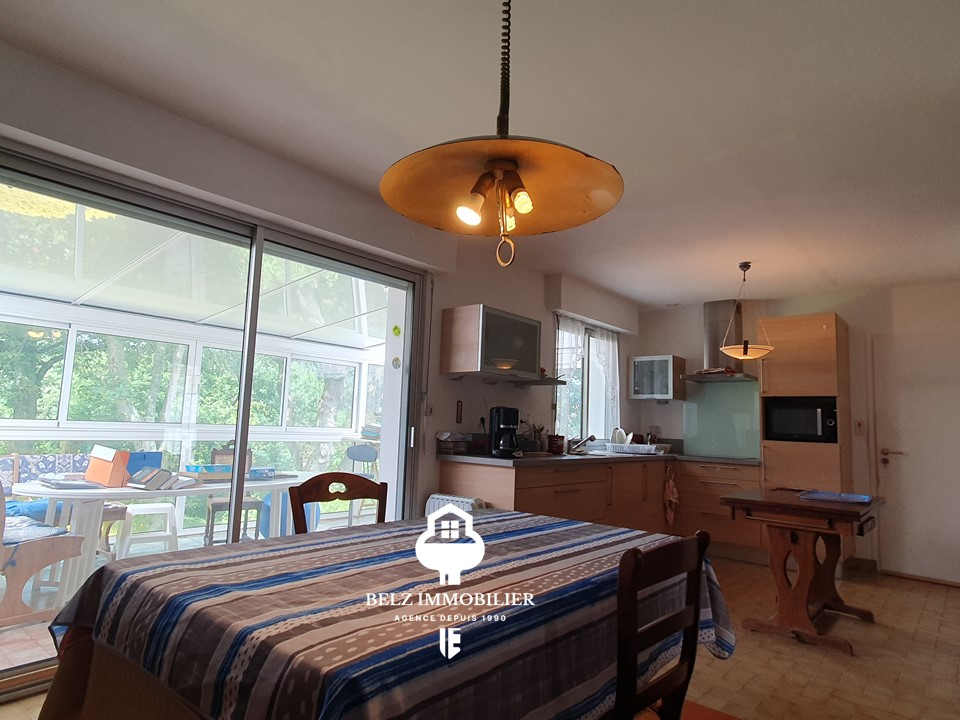 BELZ Idéalement située, au calme d'une ruelle, avec un accès à pieds sur la Ria d'ETEL et les commerces du centre de BELZ, cette habitation, construite sur un TERRAIN de 1528m², en partie constructible, comprend 2 logements, le 1er comprend en rez-de-chaussée, une belle pièce de vie de 43m², une cuisine ouverte A et E, deux vérandas, une salle d'eau, un wc, un cellier, un garage. L'étage se compose d'une mezzanine, deux chambres, un bureau et une salle de bains/wc.