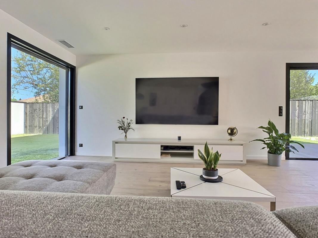 Cette maison aux grands volumes et lignes épurées offre des prestations haut de gamme et des matériaux nobles ; baies aluminium, chauffage au sol sur toute la maison, climatisation réversible, terrasse en bois exotique IPE, arrosage automatique, adoucisseur d'eau, système sono intégré, porte d'entrée biométrique à empreinte digitale, vidéosurveillance, volets roulants électriques centralisés pilotés en Wifi.