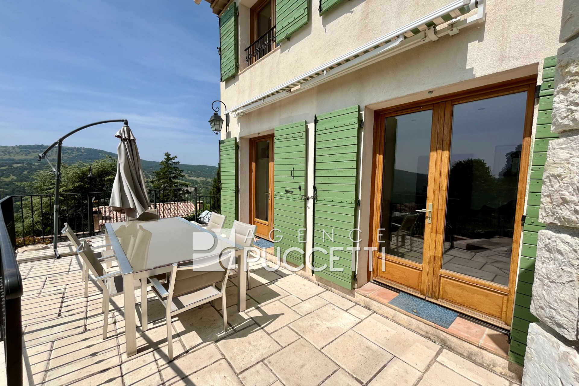 À l'entrée du village de COURSEGOULES, au calme absolu, jolie maison datant de 2004 avec piscine implantée sur une parcelle aménagée de 460 m².