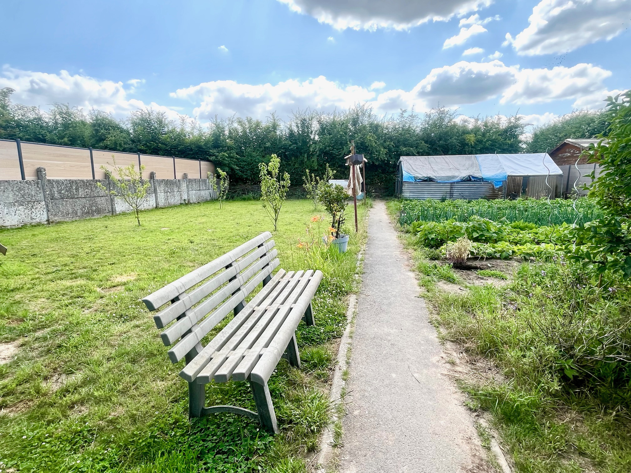 Cave, place de parking intérieur, garage, débarras, jardin entièrement clos.
