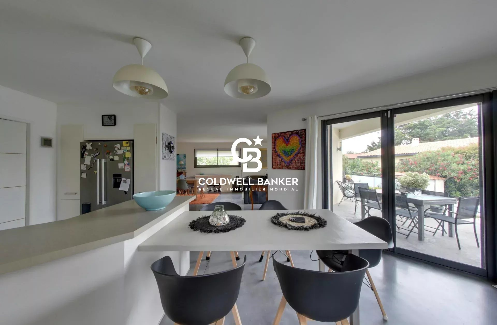 Les prestations haut de gamme comprennent du béton ciré, des baies à galandage et une climatisation réversible. Cette villa représente une opportunité rare sur le secteur, alliant confort et esthétique.