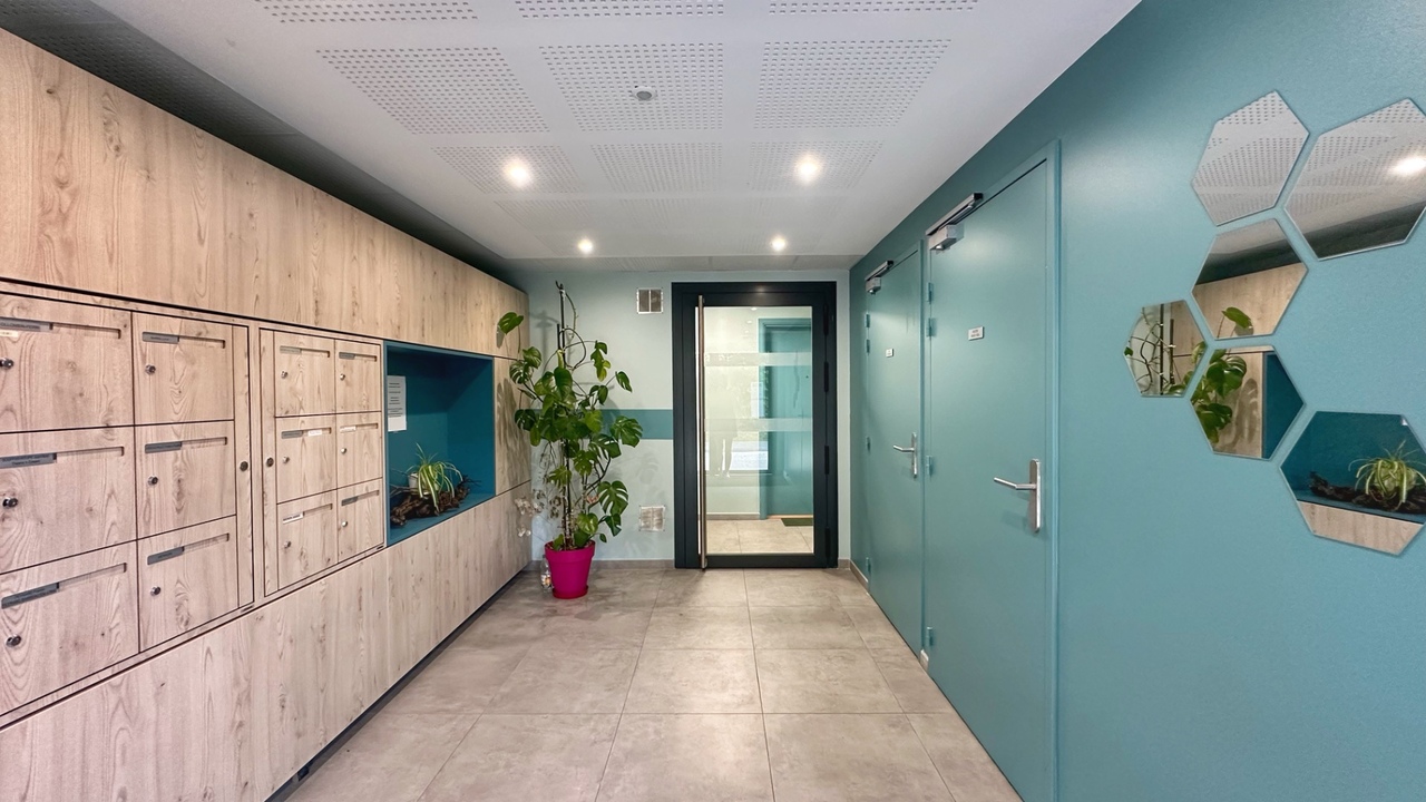 Appartement T2 de 45,75 m² situé au 1er étage avec ascenseur d’un immeuble sécurisé par visiophone construit en 2022.