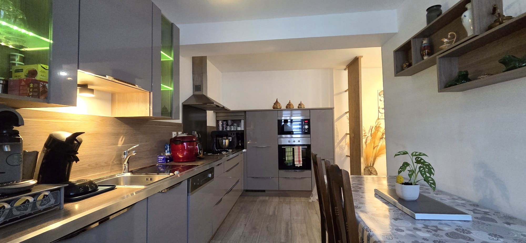 La cuisine est entièrement aménagée et équipée avec espace buanderie et chaudière ind. gaz.